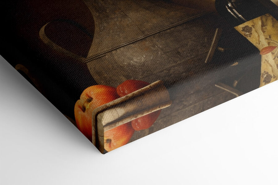 Transformați-vă spațiul cu o atingere de farmec rustic. Această imprimare pe pânză, care prezintă o natură moartă încântătoare de fructe vibrante și o sticlă confortabilă, invită la căldură și o notă de nostalgie. Imaginați-vă această piesă agățată în bucătărie sau în zona de luat masa, stârnind conversații la masă. Este ca și cum ai avea o piață a fermierilor în miniatură chiar la tine acasă, fără albine și pământ! Tonurile pământii creează o atmosferă reconfortantă, perfectă pentru serile confortabile cu un pahar de vin. Perfect pentru iubitorii de mâncare sau pentru oricine dorește să adauge un strop de viață pereților săi. Este mai mult decât un simplu decor; este o experiență care așteaptă să se întâmple!