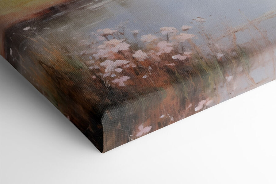 Imaginați-vă că pășiți într-o retragere liniștită de fiecare dată când priviți această imprimare pe pânză. Acesta surprinde o scenă de râu senină, flancată de copaci blânzi și iarbă moale, evocând acele după-amieze leneșe petrecute doar privind lumea trecând. Culorile se simt ca o șoaptă de briză, calmă și caldă, invitând pe oricine să stea lângă apă și să respire frumusețea. Este ca o îmbrățișare a naturii pe perete – perfectă pentru a lumina un colț liniștit sau pentru a face o declarație în camera de zi. Serios, cum poate rezista cineva farmecului florilor cuibărite pe malul râului? Gândiți-vă doar la poveștile pe care le-ar putea inspira această piesă – poate o întâlnire la cafea, un vis de aventură sau chiar un moment de pace după o zi plină. Lăsați această pânză să vă transporte în momente liniștite ori de câte ori aveți nevoie de o mică evadare.