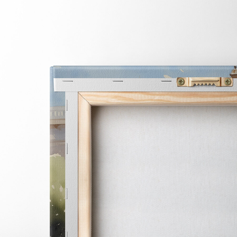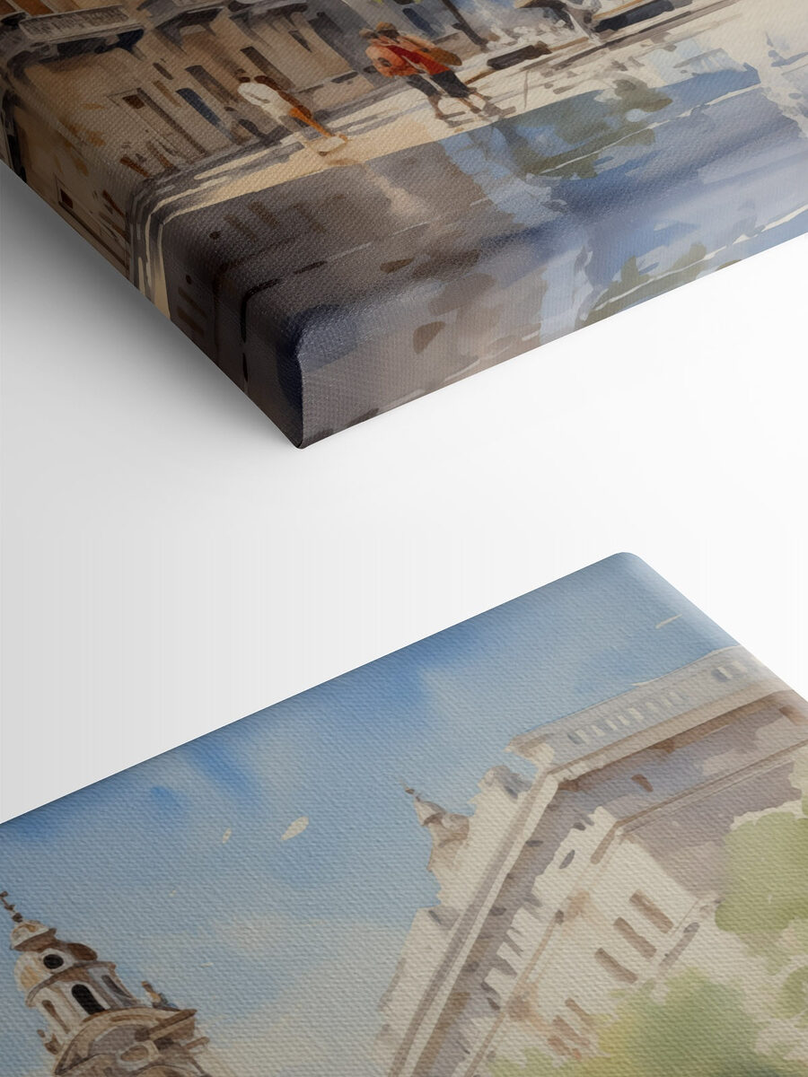 Transformați orice perete într-un vis cu ochii deschiși cu această imprimare uimitoare pe pânză de acuarelă. Imaginați-vă o zi însorită, o clădire fermecătoare care stă mândră cu o fântână jucăușă care dansează în față. Aceasta surprinde acel amestec perfect de viață urbană și natură, ceea ce o face un starter de conversație fantastic. Imaginați-vă prieteni adunați în jur, subliniind detaliile lor preferate în timp ce sorb din cafea. Vibe-ul relaxat invită o energie caldă, primitoare în spațiul dvs. Fie că este agățată într-un living confortabil sau într-un birou șic, această piesă aduce un strop de viață, adăugând un strat de fler artistic care se simte bine.