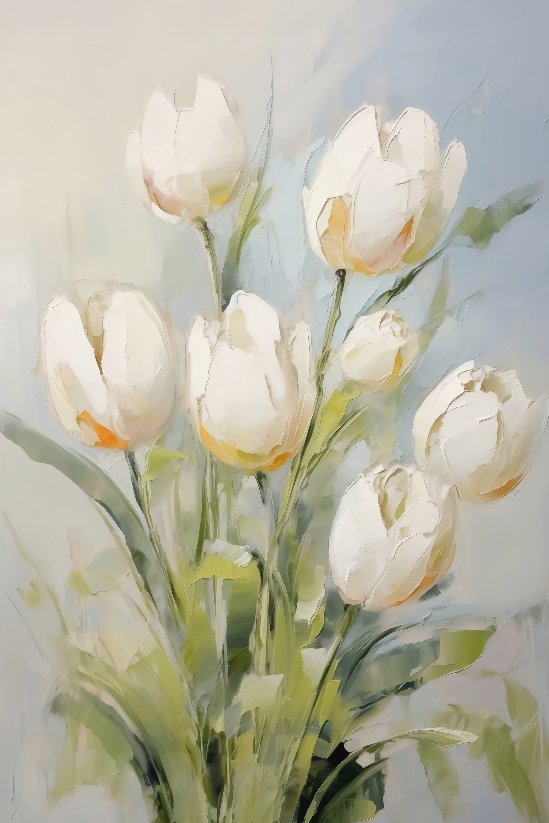 Înveseliți orice spațiu cu această imprimare fermecătoare pe pânză cu lalele albe încântătoare. Imaginați-vă că intrați într-o cameră în care aceste frumuseți vă întâmpină blând, petalele șoptindu-vă eleganță și liniște. Fundalul de vis invită la o atmosferă senină, perfectă pentru a da startul dimineților liniștite sau serilor confortabile. Este ca și cum ai avea o grădină înfloritoare care nu are nevoie de udare. Agățați-o în camera de zi, iar prietenii ar putea spune chiar: “Wow, am nevoie de asta în viața mea”. Această piesă nu este doar decor; este un memento zilnic pentru a lua o pauză și a ne bucura de lucrurile mărunte, cum ar fi o duminică leneșă cu o ceașcă de cafea aburindă. Perfect pentru a adăuga un strop de bucurie!