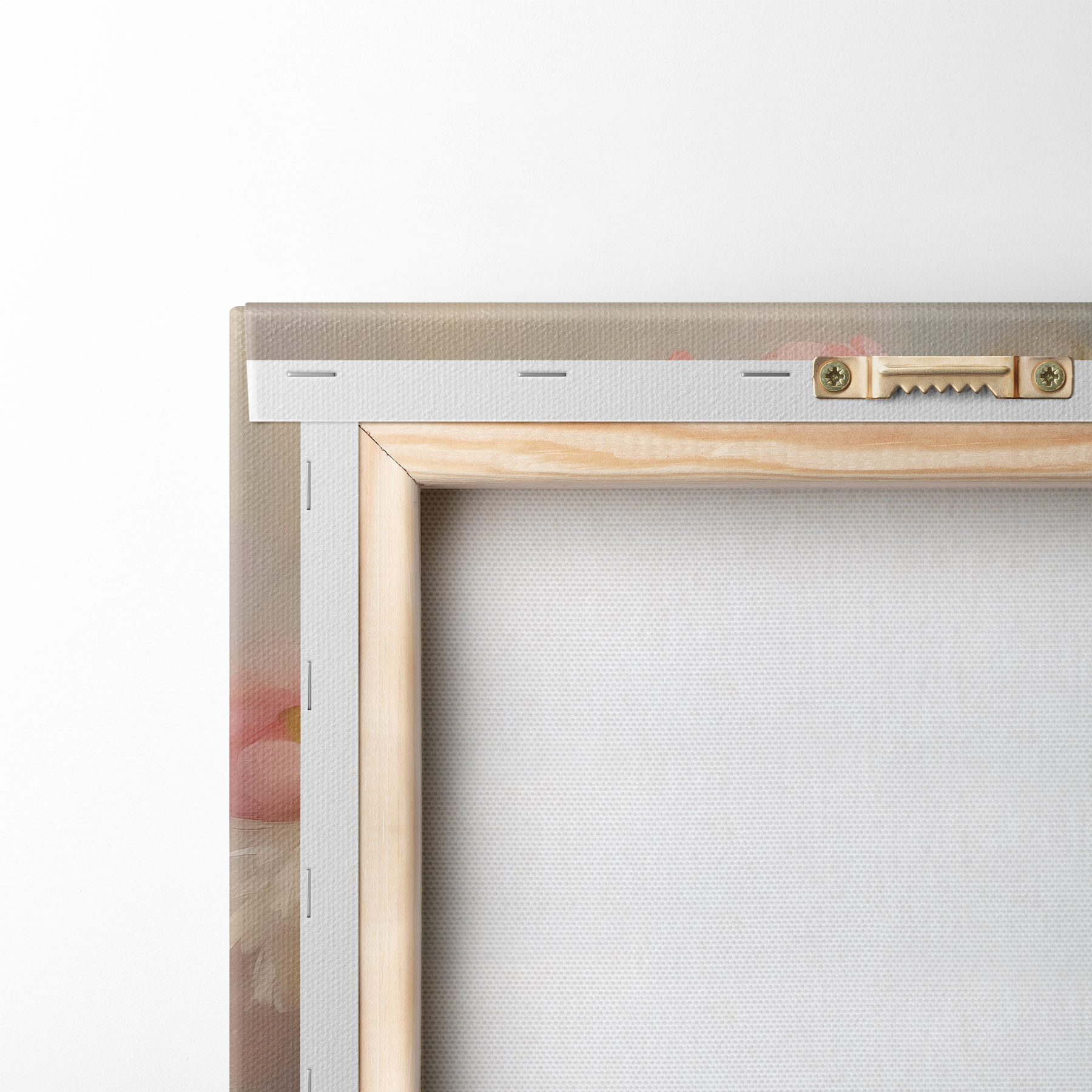 Înveseliți orice cameră cu acest fermecător print pe pânză cu flori într-o vază. Imaginați-vă că intrați în spațiul dvs. și sunteți întâmpinați de petale moi, care explodează de culoare. Aceste flori albe și piersici par să cânte, aducând un strop de bucurie care vă face să zâmbiți, așa cum ar trebui să facă primăvara. Agățați-o în sufragerie și, dintr-o dată, va fi subiect de discuție la fiecare întâlnire. Prietenii s-ar putea chiar să viseze cu ochii deschiși la grădinărit! Este ca și cum ai aduce un pic de natură înăuntru, fără stropitor și pământ. Perfect pentru acel colț confortabil sau pentru o atmosferă luminoasă și veselă în zona de luat masa.