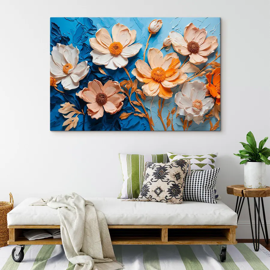 Transformați orice spațiu cu “Artful Blooms in Vibrant Hues”. Aceste printuri pe pânză pline de viață aduc bucurie și un strop de culoare, ca o grădină care prinde viață chiar pe peretele dvs. Imaginați-vă sorbindu-vă cafeaua de dimineață în timp ce vă bucurați de florile încântătoare care par să danseze în lumină. Culorile îndrăznețe și designul jucăuș adaugă o vibrație proaspătă, făcându-l perfect pentru orice cameră – fie că este un colț confortabil sau o zonă de living plină de viață. Este ca și cum ai avea un buchet care nu se ofilește niciodată. Perfect pentru iubitorii de flori sau pentru oricine dorește o notă veselă în casa sa.