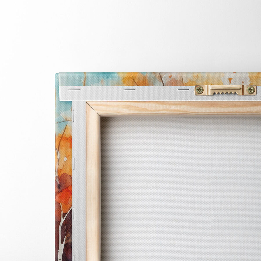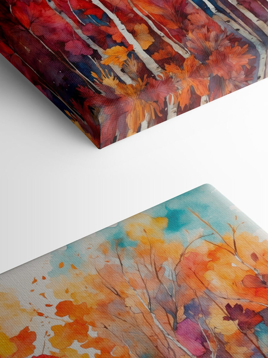 Pășește într-un tărâm al minunilor vibrant cu acest print pe pânză în acuarelă, cu copaci îmbrăcați într-o gamă orbitoare de frunze portocalii și mov. Este ca și cum toamna a decis să dea o petrecere! Imaginați-vă că agățați această piesă în camera dvs. de zi – culorile sunt atât de vii, încât practic dansează. Această operă de artă aduce fără efort aerul exterior în interior, fiind perfectă pentru a vă simți confortabil în zilele friguroase. Ar putea chiar să vă inspire vise cu ochii deschiși la plimbări printr-o pădure, cu frunzele scârțâind sub picioare și cu lumina caldă a soarelui strecurându-se printre ramuri. Cine nu și-ar dori acest strop de natură în spațiul său?