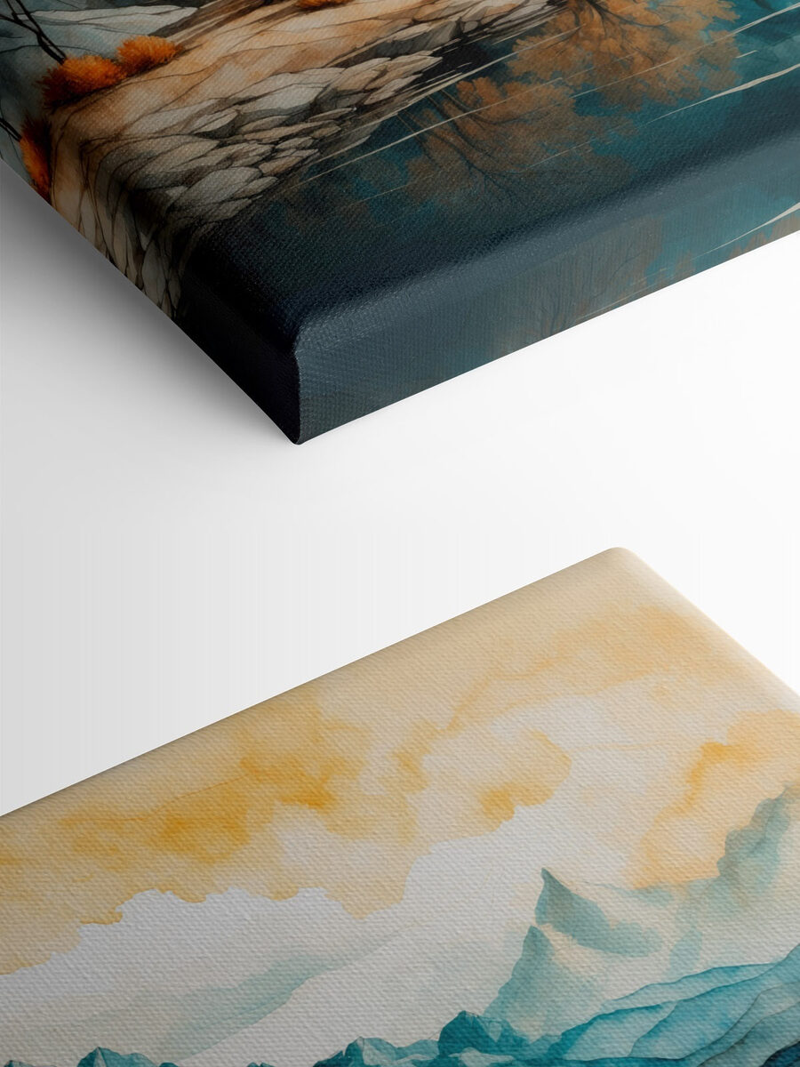 Transformați orice perete într-o evadare de vis cu această capodoperă în acuarelă. Imaginați-vă că vă scufundați într-o scenă senină de lac, în care copacii vibranți de toamnă flirtează cu apele albastre. Acei munți din fundal? Practic șoptesc dulcile secrete ale naturii. Imaginați-vă-o într-o sufragerie confortabilă sau într-un hol luminat de soare, creând căldură și invitând zâmbete. Este ca și cum ai avea o bucățică din marea natură chiar în interior, fără țânțari. Perfectă pentru cei care visează cu ochii deschiși și pentru aventurieri deopotrivă, această pânză este genul de decor care te face să te simți bine.