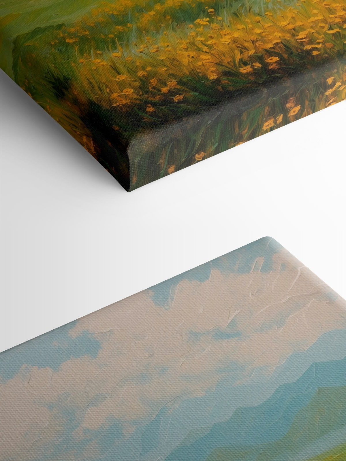 Imaginați-vă că pășiți pe un câmp luminat de soare, înconjurat de flori vibrante care dansează în adierea vântului. Acest minunat print pe pânză aduce acest sentiment direct în cameră. Cu munții maiestuoși care se profilează în depărtare și nuanțele blânde ale naturii, este ca și cum ai avea o bucată din marea natură atârnată pe peretele tău. Perfect pentru a înveseli un colțișor confortabil sau pentru a adăuga un strop de culoare unui spațiu neutru. S-ar putea să vă treziți visând cu ochii deschiși la după-amiezele leneșe, în care singurul lucru pe ordinea de zi este să sorbiți ceai și să priviți norii jucându-se de-a v-ați ascunselea. Iubitorii de natură vor adora această piesă, dar, sincer, cine nu și-ar dori să evadeze spre o astfel de priveliște senină fără să iasă din casă?