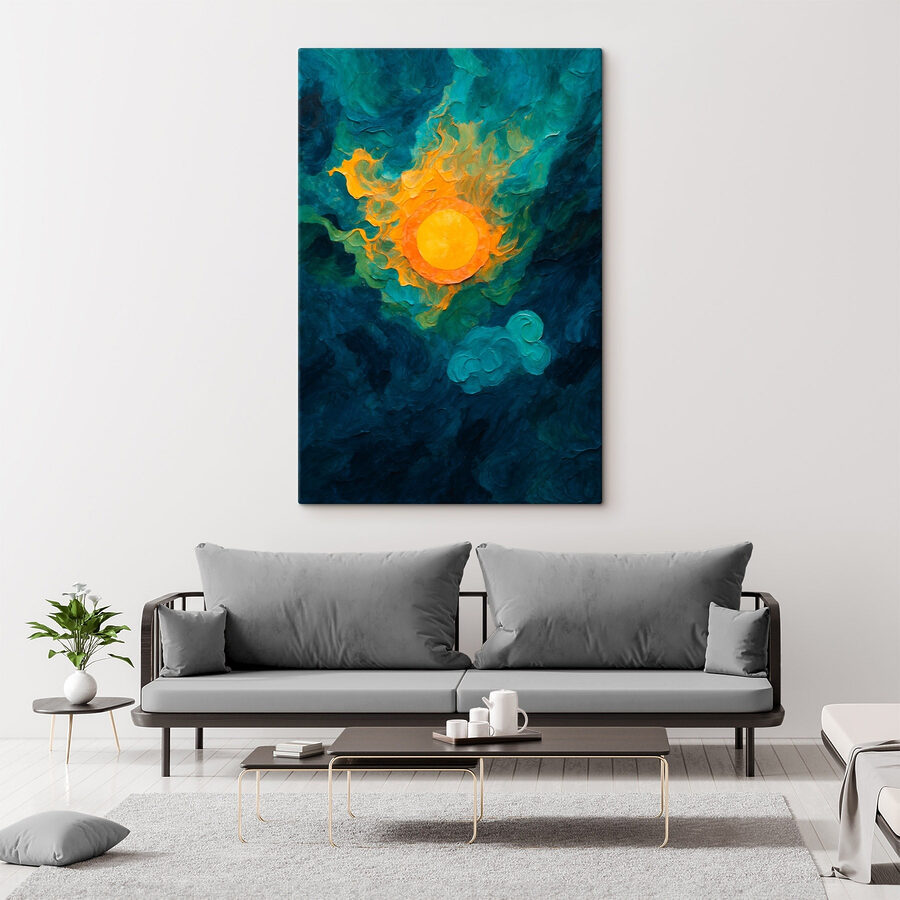 Înălțați-vă spațiul cu această imprimare uimitoare pe pânză, un dans vibrant al soarelui și al norilor care captează imaginația. Imaginați-vă-o înviorând un colț confortabil sau creând o piesă centrală veselă într-o cameră de zi – ridică instantaneu starea de spirit. Galbenul cald reprezintă un soare jucăuș, aducând o notă de bucurie, în timp ce albastrul și verdele turbionare sugerează un sentiment de calm. Este ca și cum ai prinde un cer perfect într-o după-amiază leneșă. Perfectă pentru cei care apreciază arta abstractă, această piesă invită la visare cu ochii deschiși și zâmbete de fiecare dată când este privită.