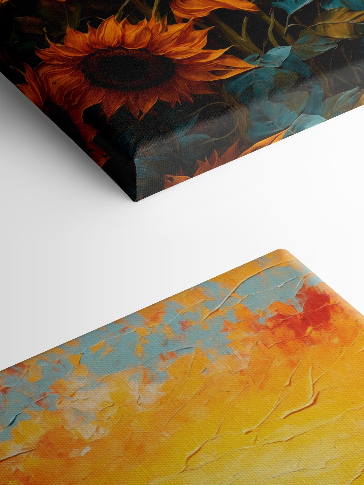 Înveseliți orice spațiu cu această imprimare uimitoare pe pânză cu floarea-soarelui care se scaldă într-un câmp auriu. Imaginați-vă că intrați într-o cameră și ele sunt acolo, vesele și îndrăznețe, amintind tuturor că există frumusețe în natură! Galbenul cald și verdele intens sunt ca o îmbrățișare pentru ochi. Este perfect pentru un colț confortabil sau pentru a anima acel perete care se simte un pic singur. În plus, stârnește conversații – cui nu-i plac florile soarelui? Momentele petrecute aici vor fi un pic mai fericite, ca și cum v-ați bucura de un picnic însorit după-amiază.
