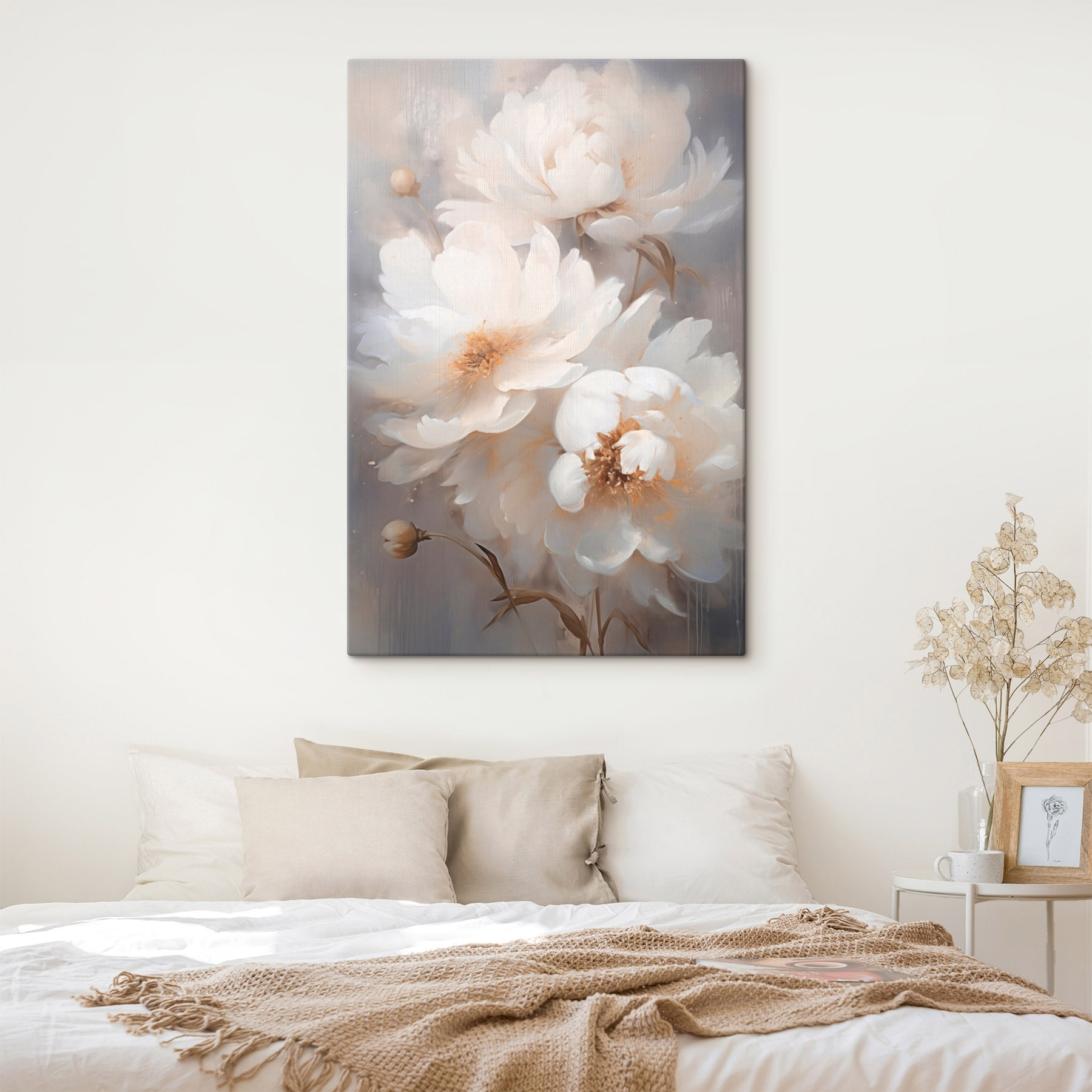 Aduceți o gură de aer proaspăt în orice cameră cu această imprimare uimitoare pe pânză de flori albe. Este ca și cum ai avea o mică grădină înflorită pe perete, mai puțin cutia de udat. Culorile blânde și tușele delicate creează o atmosferă liniștitoare, perfectă pentru momentele în care viața devine un pic prea agitată. Imaginați-vă sorbind ceai pe canapea, relaxându-vă în timp ce priviți această frumusețe. Cu siguranță va stârni zâmbete și complimente din partea vizitatorilor. În plus, se potrivește perfect cu tot felul de stiluri de decor – nu este nevoie de cunoștințe sofisticate în materie de decor! Un accesoriu încântător care șoptește eleganță și căldură.