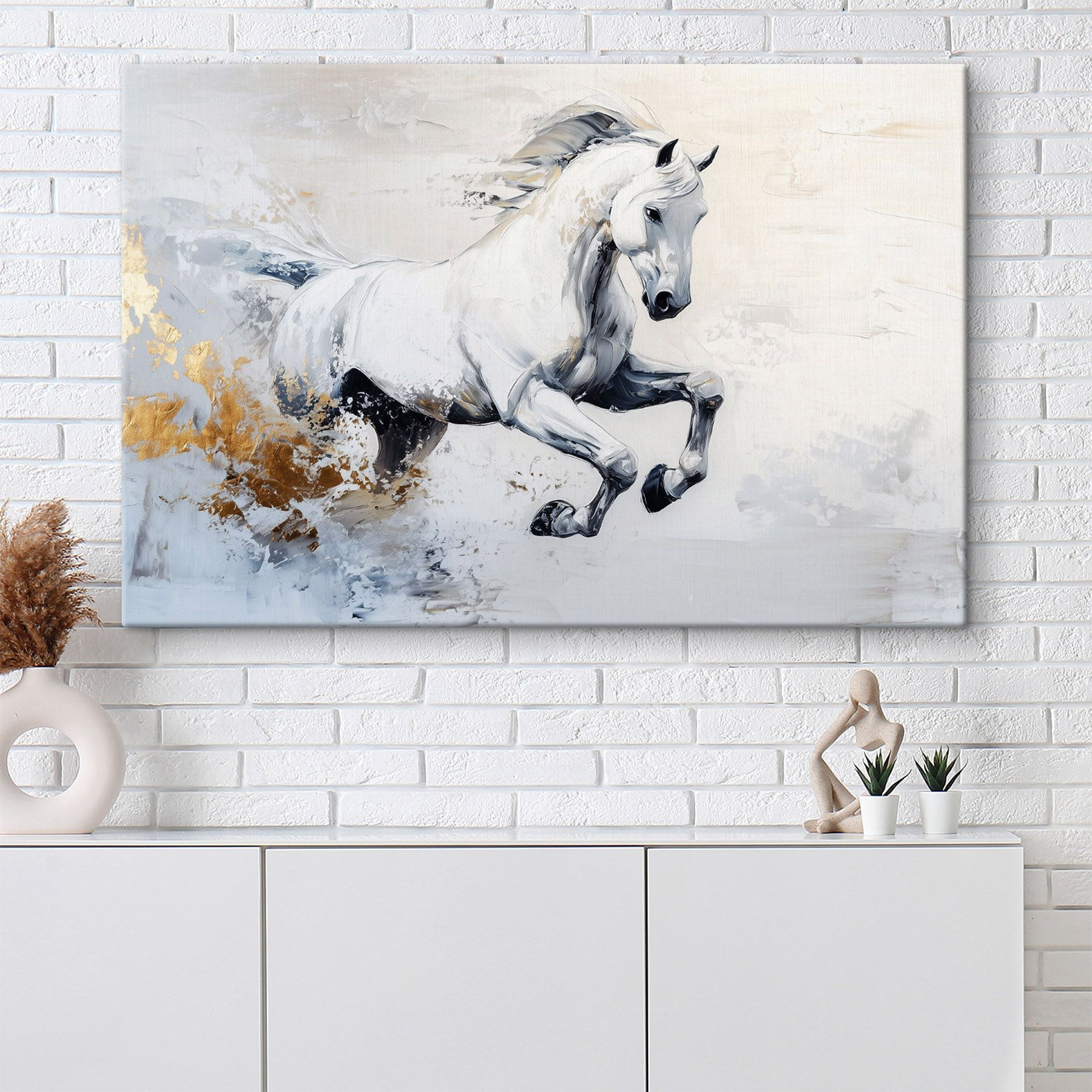 Imaginați-vă acest lucru: un cal alb uimitor, capturat în mijlocul galopului, pur și simplu plin de viață și energie. Acest print pe pânză nu este doar decor; este ca o gură de aer proaspăt pentru spațiul tău. Imaginați-vă că o agățați într-un loc unde o puteți vedea în fiecare zi – poate în camera de zi sau într-un colț de lectură confortabil. Modul în care culorile dansează împreună atrage privirea, făcând chiar și cele mai plictisitoare zile să pară mai luminoase. Este, de asemenea, o sursă de conversație! Cine nu ar vrea să discute despre acest spirit puternic? Adăugați un pic de fler, un strop de personalitate și lăsați acest cal să devină parte din familie.