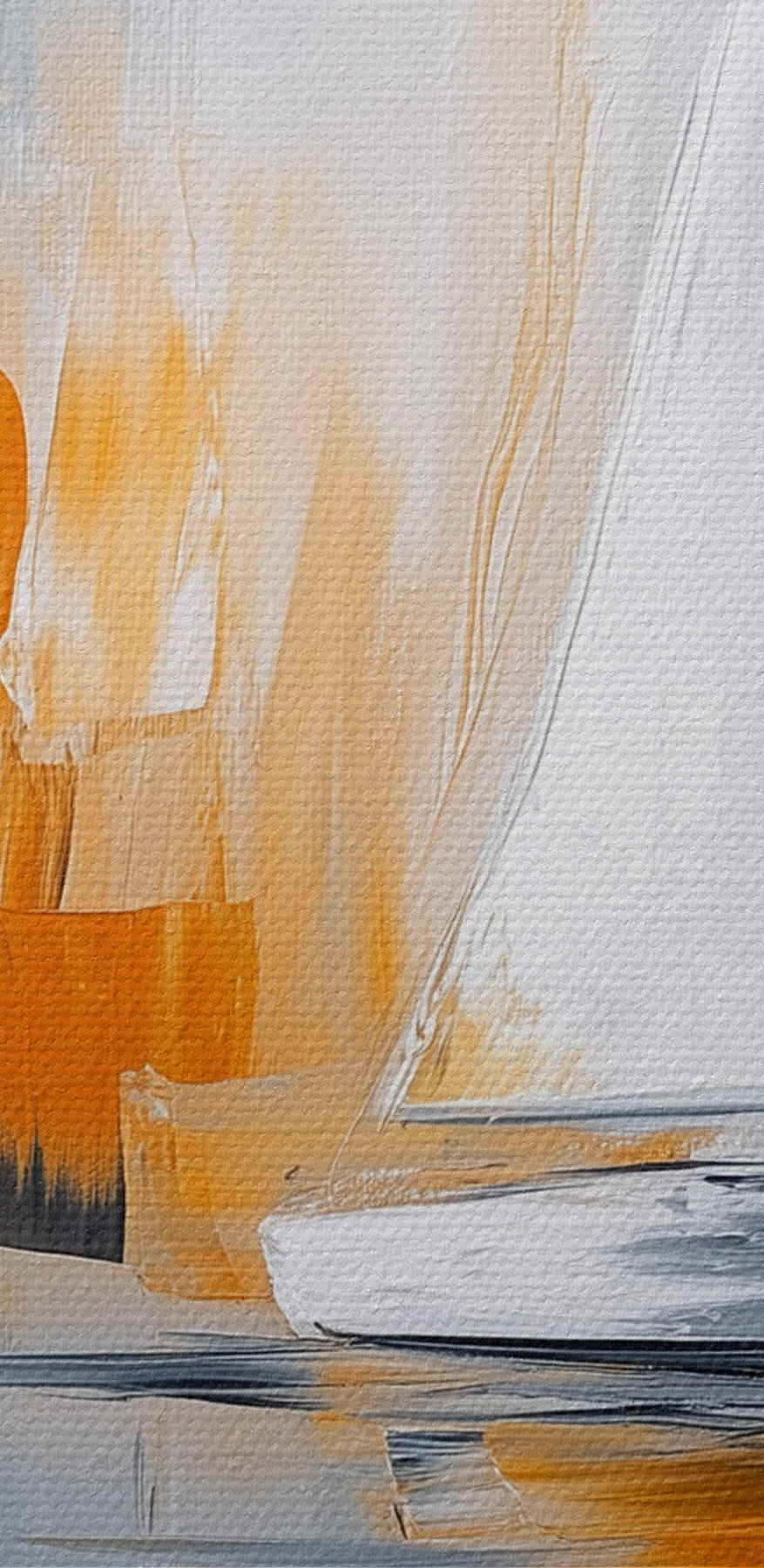 Cu griuri blânde și accente de portocaliu, această piesă nu stă doar pe perete; ea insuflă viață unei încăperi și poate chiar împinge pe cineva să se apuce de navigat! Ce modalitate mai bună de a stârni un pic de bucurie și dorință de călătorie? Perfect pentru cei care iubesc natura, un strop de culoare și un strop de aventură. Imaginați-vă doar sorbind cafeaua în timp ce vă bucurați de valurile artistice. Cine nu și-ar dori asta?