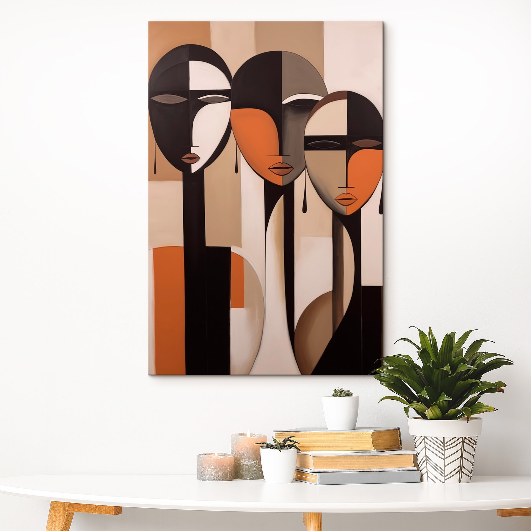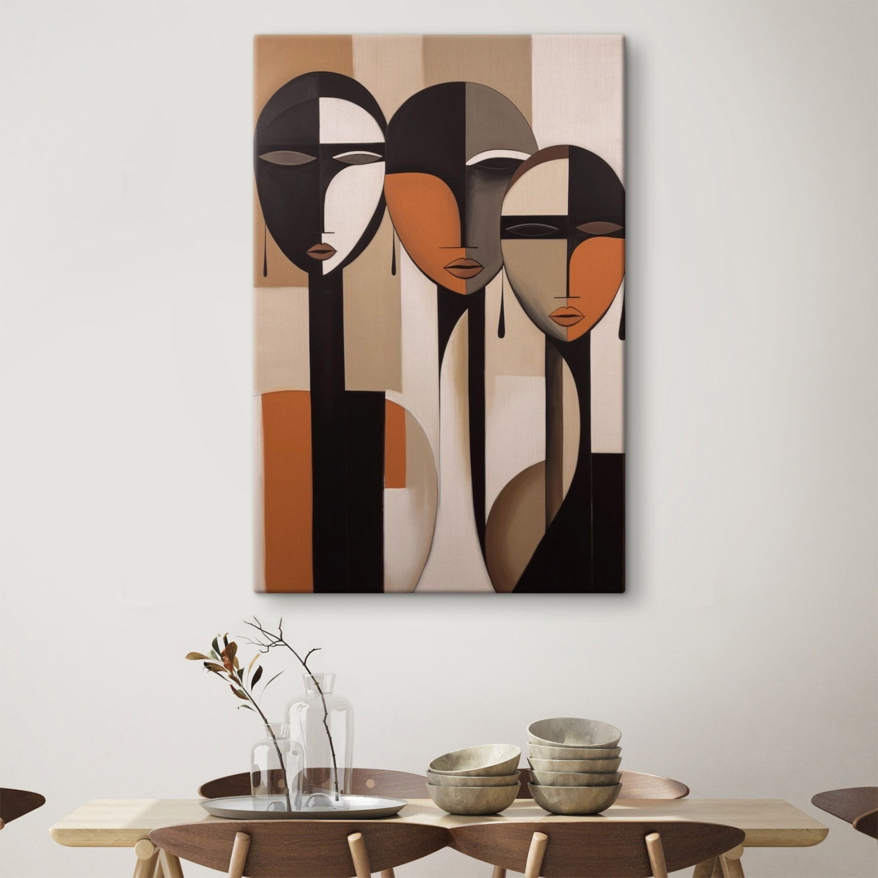 Cufundă-te în această imprimare uimitoare pe pânză care surprinde esența comunității și a individualității. Cu fețe îndrăznețe, abstracte, pictate în tonuri pământii, aceasta invită privirile curioase și stârnește conversații. Imaginați-vă că o agățați într-o cameră de zi confortabilă, unde prietenii se adună, poate sorbind un ceai, în timp ce interpretează colectiv expresiile figurilor. Liniile netede și nuanțele calde creează o atmosferă primitoare – este un mic memento că diversitatea este frumoasă. Fie că este vorba de o zonă de luat masa sau de un colțișor liniștit, această piesă adaugă caracter fără a spune un cuvânt – perfectă pentru a adăuga o notă de atenție oricărui spațiu.