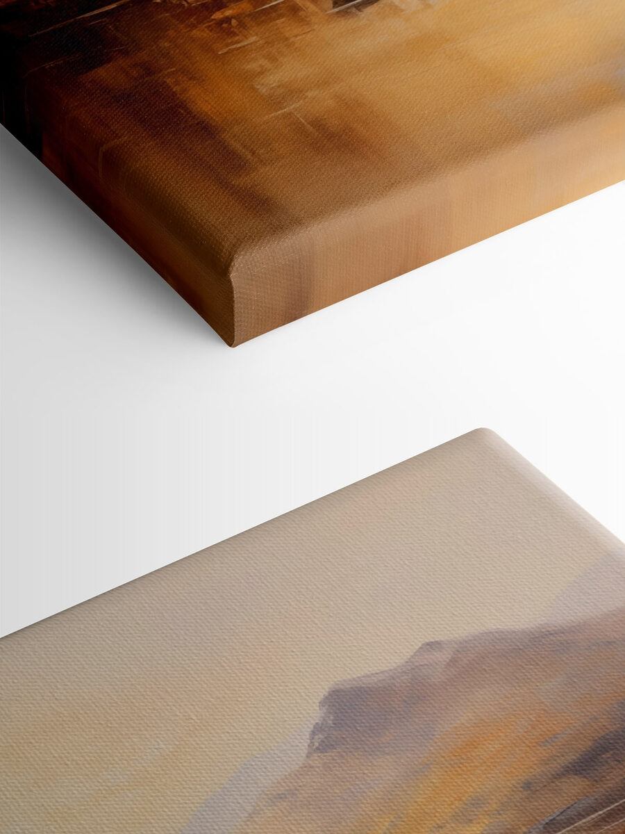 Imaginați-vă că vă aflați pe un lac liniștit, înconjurat de munți maiestuoși, cu strălucirea blândă a unui apus de soare reflectându-se pe apă. Această imprimare pe pânză surprinde perfect acest moment de vis. Imaginați-vă doi oameni bucurându-se de liniște, poate împărtășind povești, sau pur și simplu absorbind totul. Aceasta aduce o atmosferă confortabilă și caldă în orice spațiu. Fie că este în camera de zi, în biroul de acasă sau chiar într-un colț liniștit de lectură, această piesă invită la calm și contemplare. În plus, cine nu dorește o fereastră către natură atunci când este blocat în interior? Este ca o mică felie de liniște chiar pe peretele tău!
