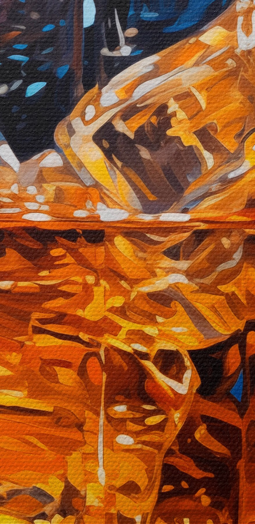 Captați esența relaxării cu această imprimare uimitoare pe pânză, care prezintă un pahar cu lichid de culoarea chihlimbarului, așezat perfect printre cuburi de gheață crocante. Tonurile calde radiază confort, oferind o imagine a serilor confortabile petrecute după o zi lungă. Imaginați-vă această operă de artă decorând o cameră de zi sau un bar de acasă, ridicând instantaneu vibrația – este ca și cum ați avea o mică bucată de liniște pe perete. În plus, stârnește conversații. Prietenii se vor aduna în jur, împărtășind povești în timp ce admiră această piesă atrăgătoare – nu uitați doar să turnați o băutură!