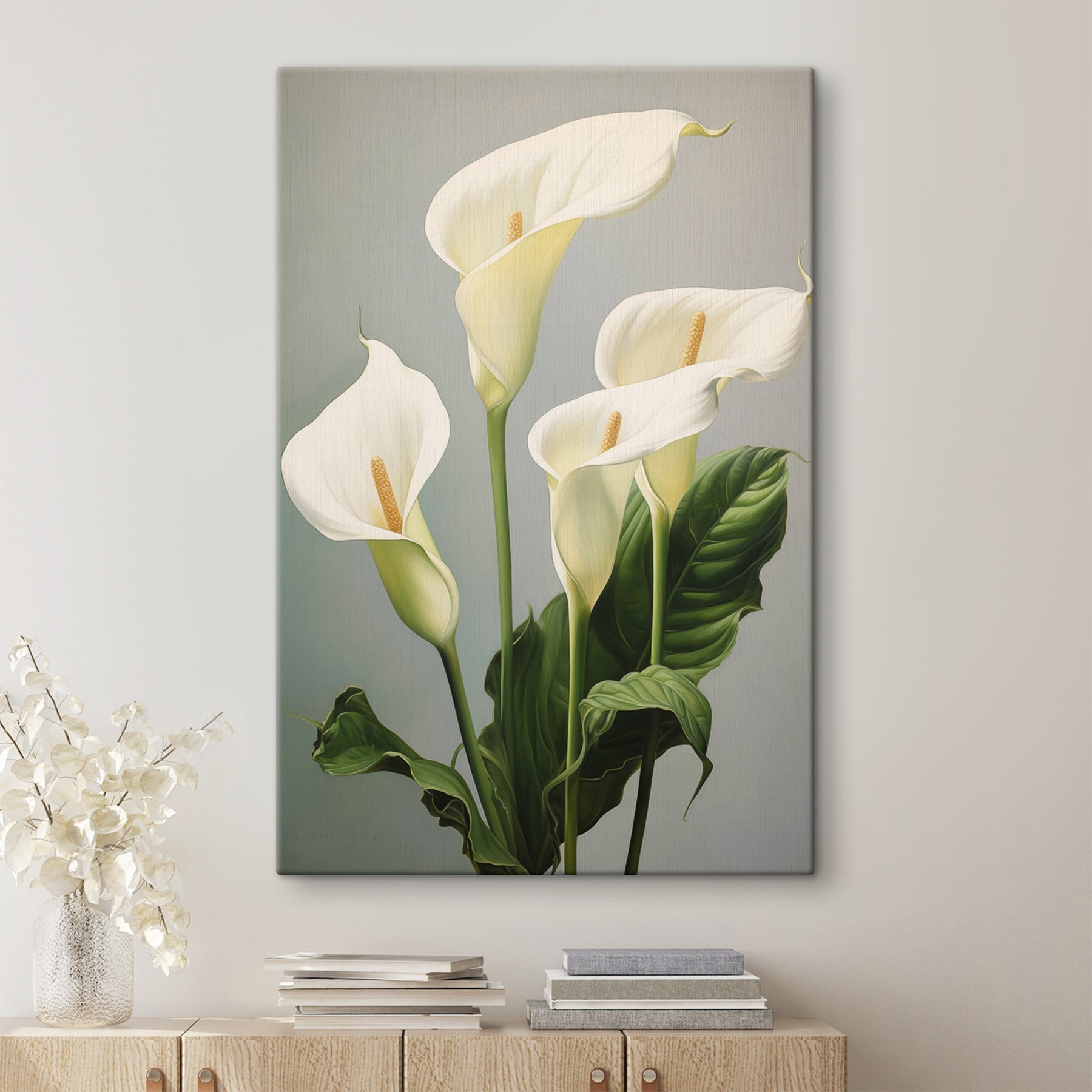 Imaginați-vă că intrați într-o cameră și, bam! Acolo este “Delicate White Blooms in Harmony”. Această imprimare pe pânză nu doar stă acolo; aduce o briză blândă de eleganță și calm, ca și cum florile însele ar șopti lucruri dulci. Perfect pentru acel colț care are nevoie de puțină dragoste sau chiar deasupra canapelei pentru a stârni conversații încântătoare.