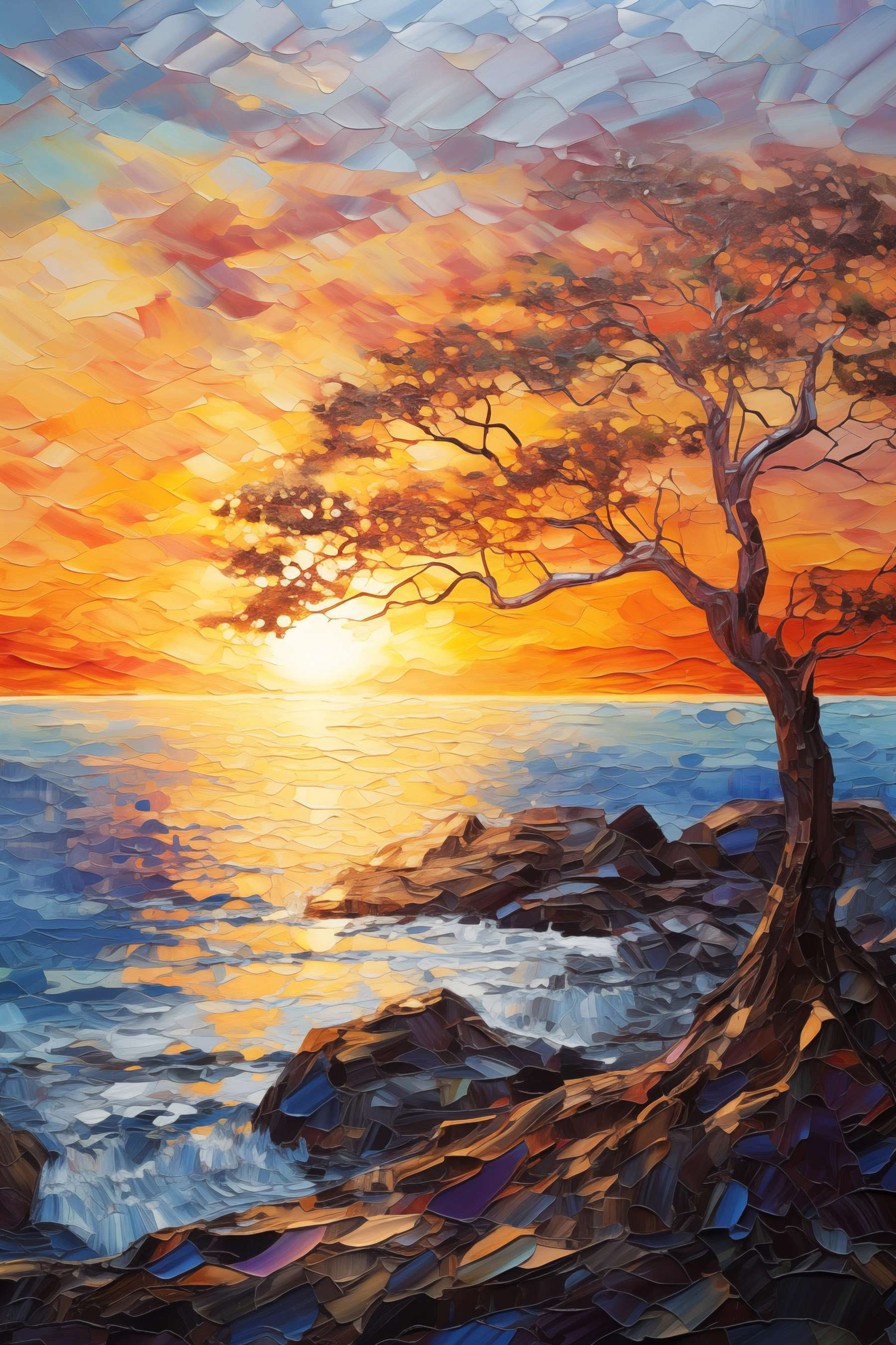 Imaginați-vă acest lucru: un copac uimitor stă de pază deasupra unui țărm stâncos, bucurându-se de strălucirea caldă a unui soare la apus. Acest print pe pânză nu este doar o decorațiune; este o mică felie de paradis care aduce natura direct într-o cameră. Imaginați-vă sunetul moale al valurilor în fundal, pâlpâirea luminii aurii care dansează pe apă. Este ca un memento pentru a vă relaxa și a vă bucura de plăcerile simple ale vieții. Fie că este agățată în camera de zi sau luminează un colț confortabil, această piesă șoptește o mică aventură de fiecare dată când o priviți. Perfectă pentru cei care apreciază frumusețea blândă a naturii!