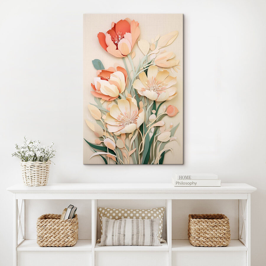 Transformați orice spațiu cu această imprimare încântătoare pe pânză, prezentând flori frumoase decupate din hârtie care aduc o notă de natură în interior. Imaginați-vă că intrați în camera dvs. și simțiți un val de calm, în timp ce aceste flori vibrante dansează pe perete, șoptindu-vă vibrații de primăvară pe tot parcursul anului. Perfecte pentru a decora un living sau pentru a adăuga o notă jucăușă unui dormitor, este ca și cum ai avea o grădină personală, fără a fi nevoit să o uzi. Prietenii se vor întreba cum reușiți să obțineți un astfel de farmec fără efort. Nu este doar decor; este o invitație să vă opriți și să mirosiți – sau, în acest caz, să admirați – florile.