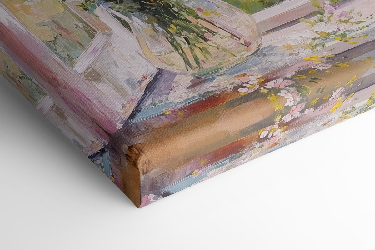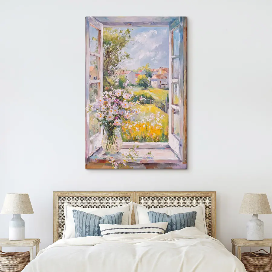 Imaginați-vă că vă treziți într-o dimineață însorită cu acest minunat print pe pânză care vă întâmpină. Este ca și cum ai invita o felie dulce de natură chiar în spațiul tău confortabil. Fereastra, larg deschisă, dezvăluie un buchet de flori vibrante care se înmoaie în soare, în timp ce pajiștea luxuriantă se întinde dincolo. Această piesă adaugă fără efort farmec și căldură oricărei încăperi, făcând-o să pară mai vie. Imaginați-vă-o într-o cafenea cochetă sau într-un birou însorit – oaspeții dvs. se vor opri cu siguranță să o admire. Este genul de artă care șoptește, “Relaxează-te, acum ești acasă”. Perfect pentru a visa cu ochii deschiși sau pur și simplu pentru a vă bucura de un moment!