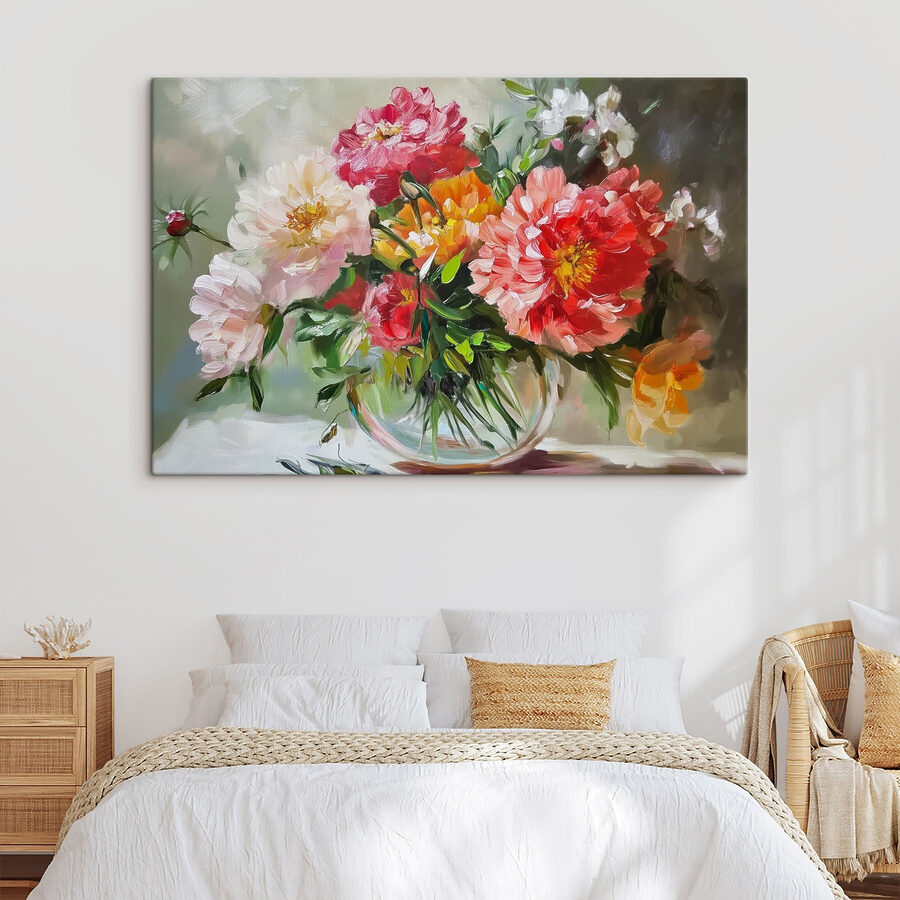 Înveseliți orice cameră cu această imprimare uimitoare pe pânză a florilor într-o vază! Imaginați-vă aceste flori vibrante care prind viață chiar pe peretele dvs. – un stimulent perfect pentru zilele mohorâte sau o completare veselă pentru întâlnirile pline de viață. Fiecare petală pare să danseze în culori, făcând-o să pară primăvara chiar și în plină iarnă. Este genul de piesă care atrage privirile și invită la complimente din partea oaspeților. Gândiți-vă doar la serile confortabile de acasă, sorbind ceai și bucurându-vă de acest frumos strop de natură. Perfect pentru cei care iubesc o notă de frumusețe în viața lor!