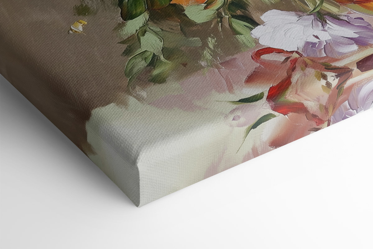 Înveseliți orice cameră cu această imprimare încântătoare pe pânză, care prezintă un buchet vibrant de flori într-o vază – perfect pentru cei care nu pot păstra în viață flori adevărate! Imaginați-vă că intrați în spațiul dvs. și sunteți întâmpinați de o explozie de culoare și veselie. Amestecul jucăuș de flori aduce o notă de natură în interior, ceea ce îl transformă într-o sursă excelentă de conversație. Este ca și cum o grădină a decis să se elibereze și să danseze pe peretele tău. Fie că este în camera de zi sau în colțul confortabil în care sorbiți cafeaua, acest print creează o ambianță primitoare care pur și simplu vă face să vă simțiți bine. Cine nu are nevoie de puțină magie florală din când în când?