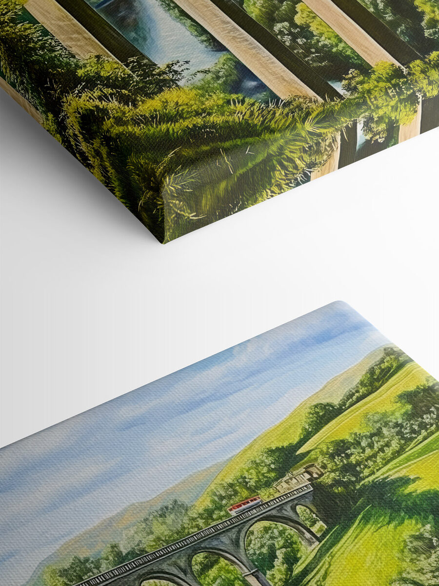 Imaginați-vă un tren mergând de-a lungul unui pod grațios, așezat între dealuri luxuriante și un râu șerpuitor. Această imprimare pe pânză aduce această scenă încântătoare chiar în spațiul dvs. Verdele viu, albastrul moale și arcurile maiestuoase creează o atmosferă liniștitoare, dar înălțătoare, perfectă pentru orice cameră. Imaginați-vă sorbind cafea în timp ce priviți această capodoperă – ca o pictură – un mic vis de zi pe peretele dvs. Aceasta invită la căldură și aventură, amintindu-le tuturor că există frumusețe atât în călătorii, cât și în natură. Și, hei, ar stârni conversații grozave, poate chiar ar inspira o călătorie spontană cu mașina. Cine nu și-ar dori asta?