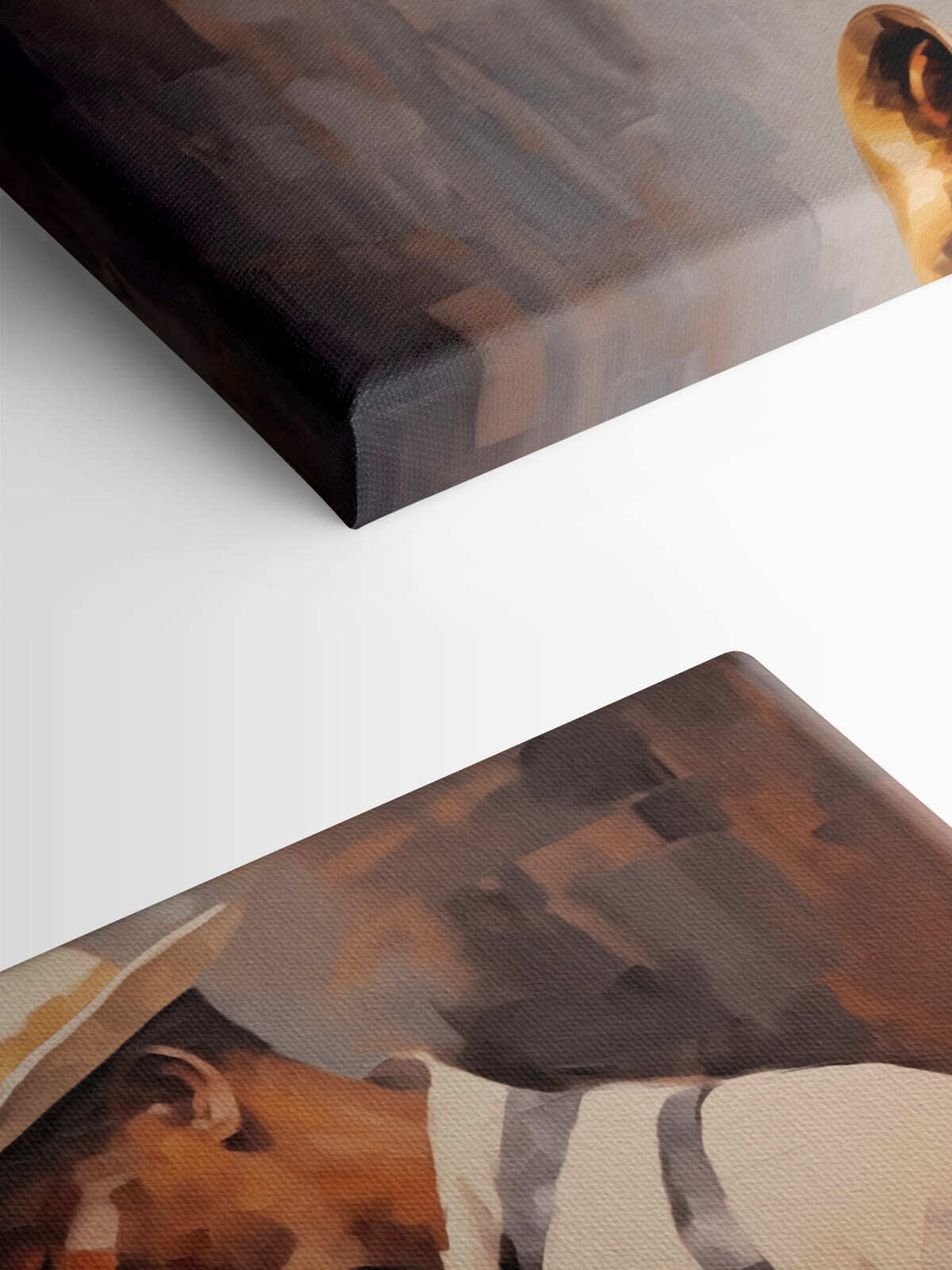 Transformați orice spațiu într-un refugiu sufletesc cu această imprimare captivantă pe pânză a unui bărbat pierdut în saxofonul său. Imaginați-vă jazz-ul suav care răsună în sufrageria dvs. când se lasă seara – această lucrare de artă aduce acest vibe direct pe pereții dvs. Nu este doar un decor; este o stare de spirit. Fie că se află într-un colț confortabil sau deasupra unei canapele bine uzate, stârnește conversații și aduce căldură. Imaginați-vă un jam session nocturn sau o întâlnire ocazională în care invitații nu pot decât să zâmbească și să bată din picioare. Cu tonurile sale bogate și imaginea sa expresivă, invită pe oricine se află în apropiere să se relaxeze și să se cufunde în ritmul vieții. Cine nu și-ar dori un pic din această energie?