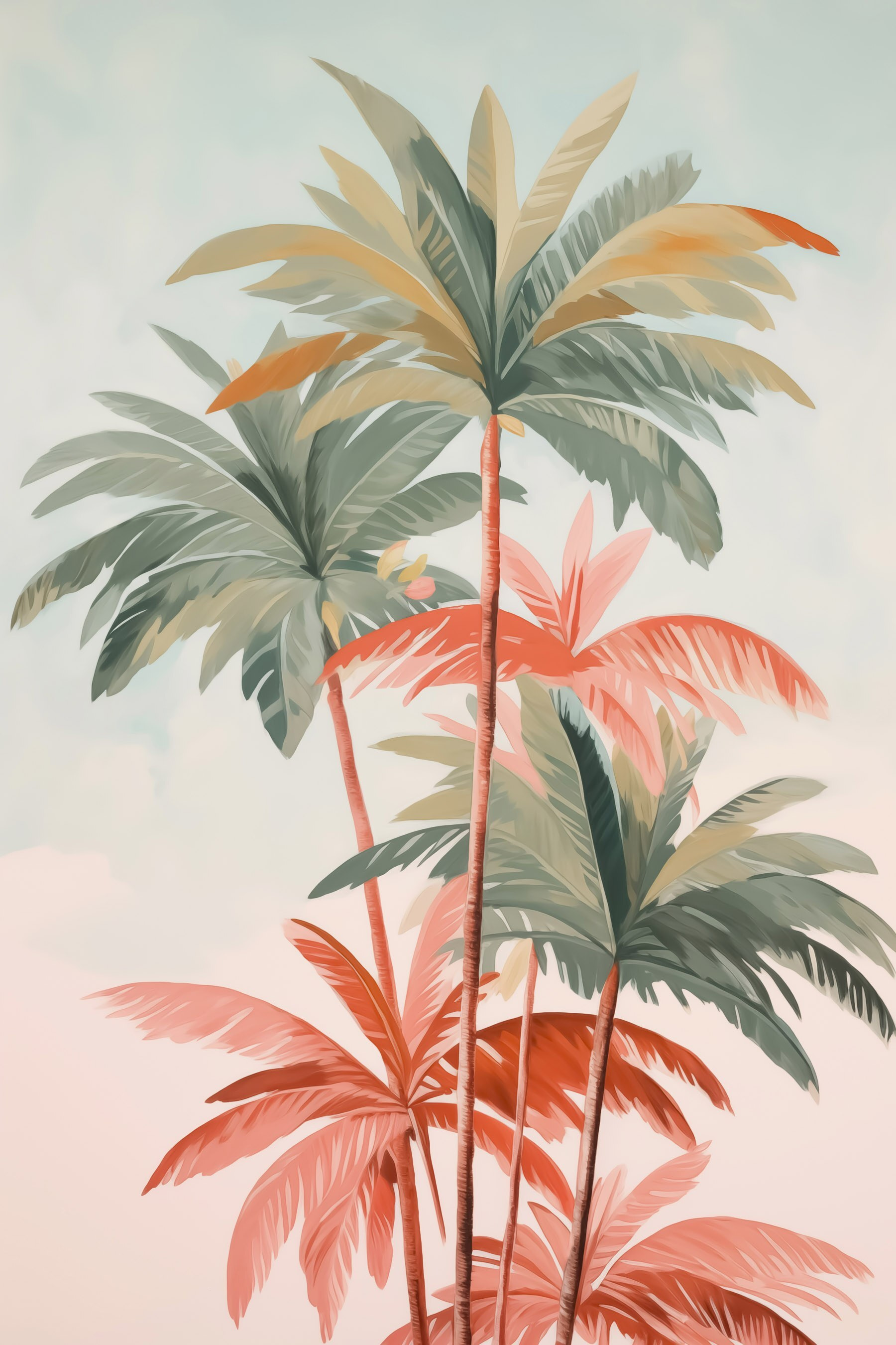 Transformați-vă spațiul cu această imprimare pe pânză vibrantă, care prezintă un grup plin de viață de palmieri. Imaginează-ți că te relaxezi în camera de zi sau în biroul de acasă, înconjurat de aceste verdețuri jucăușe și rozuri moi, evocând o briză tropicală blândă. Este ca o mini-vacanță chiar pe peretele tău! Vibrațiile ușoare ale acestor palmieri invită la căldură și relaxare, făcând ca fiecare zi să fie un pic mai specială. Perfectă pentru cei care doresc o felie de natură în interior, această operă de artă stârnește bucurie și invită la vise cu ochii deschiși la țărmuri însorite și după-amieze leneșe. Un plus minunat pentru orice stil de decor!