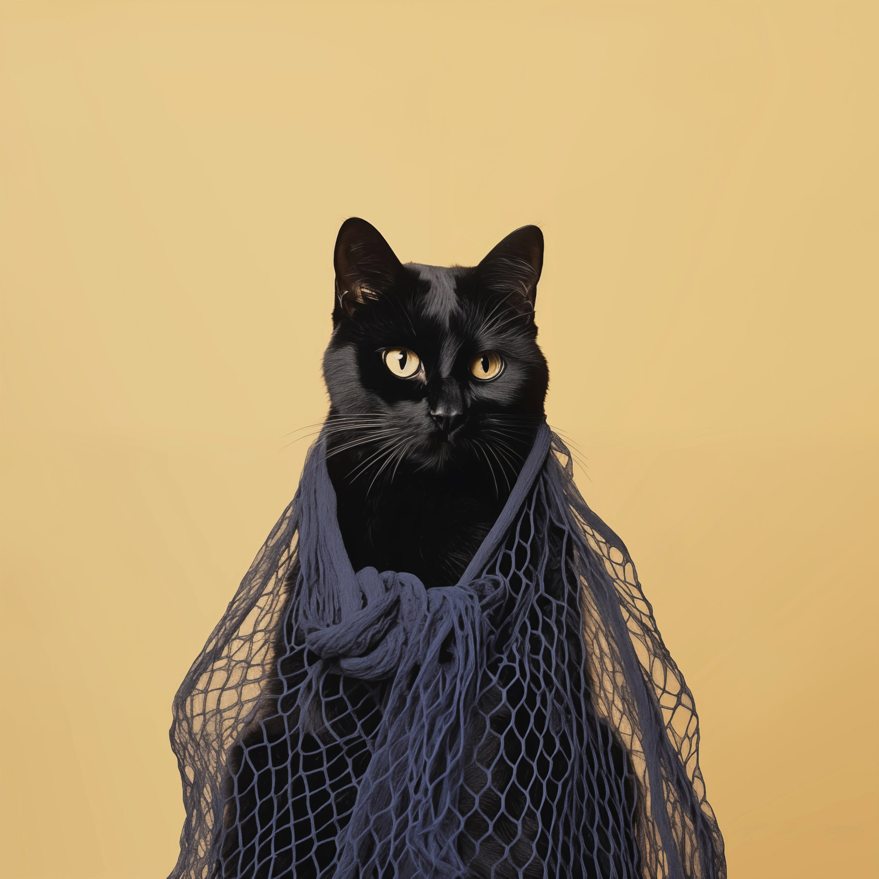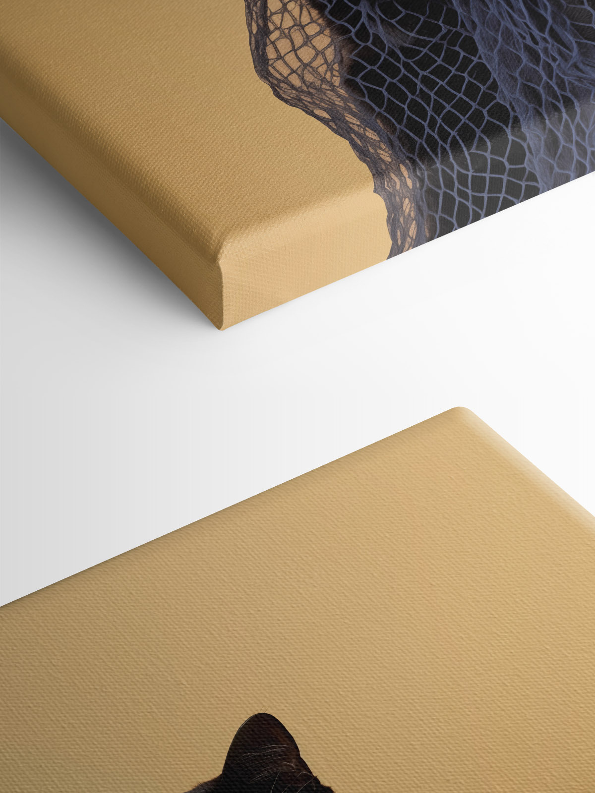Imaginați-vă acest lucru: o pisică, purtând cu încredere o plasă, ca și cum tocmai ar fi ieșit de pe un podium. Acest print pe pânză, intitulat “Cat Wearing a Net” (Pisică purtând plasă), aduce o vibrație jucăușă care cu siguranță va stârni conversații. Blana neagră izbitoare și acei ochi aurii captivanți te atrag înăuntru, făcându-te greu să privești în altă parte. Perfectă pentru o cameră de zi confortabilă sau un birou excentric, această imagine înveselește atmosfera și adaugă un strop de fantezie. Prietenii ar putea chiar să chicotească și să remarce cum spațiul tău a devenit un podium – la propriu. Nu este doar artă; îți transformă peretele într-o pânză a personalității.