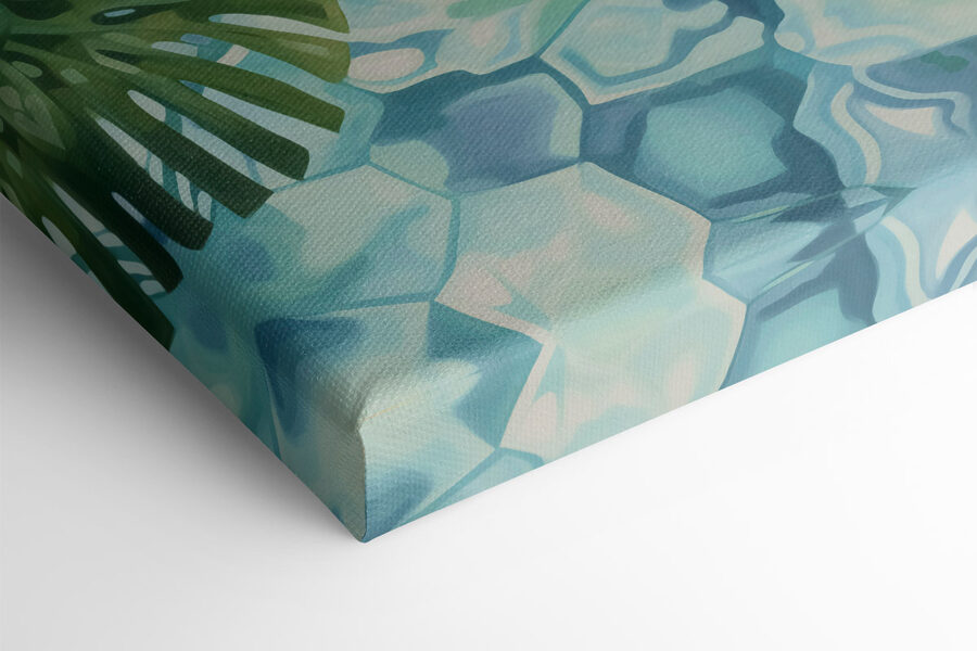 Imaginați-vă liniștea unei piscine senine, unde natura dansează cu apele calme, iar această imprimare pe pânză aduce acea scenă chiar în casa dvs. Cu o figură pașnică pierdută în gânduri, înconjurată de verdeață luxuriantă, este ca o mini-vacanță pentru pereții dvs. Perfectă pentru un colț de lectură confortabil sau pentru acel loc care are nevoie de puțină viață, această lucrare de artă vă invită să faceți o pauză, să respirați și poate chiar să visați puțin cu ochii deschiși. Culorile? Răcoritoare ca un strop de apă rece. Este mai mult decât un simplu decor; este o experiență – un memento blând pentru a îmbrățișa acele mici momente de pace din viața de zi cu zi.