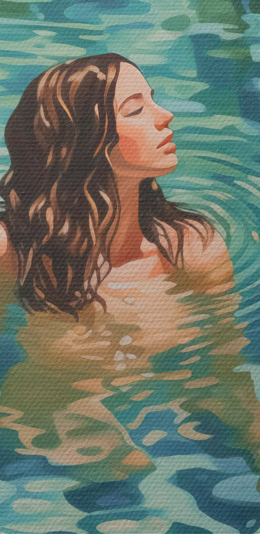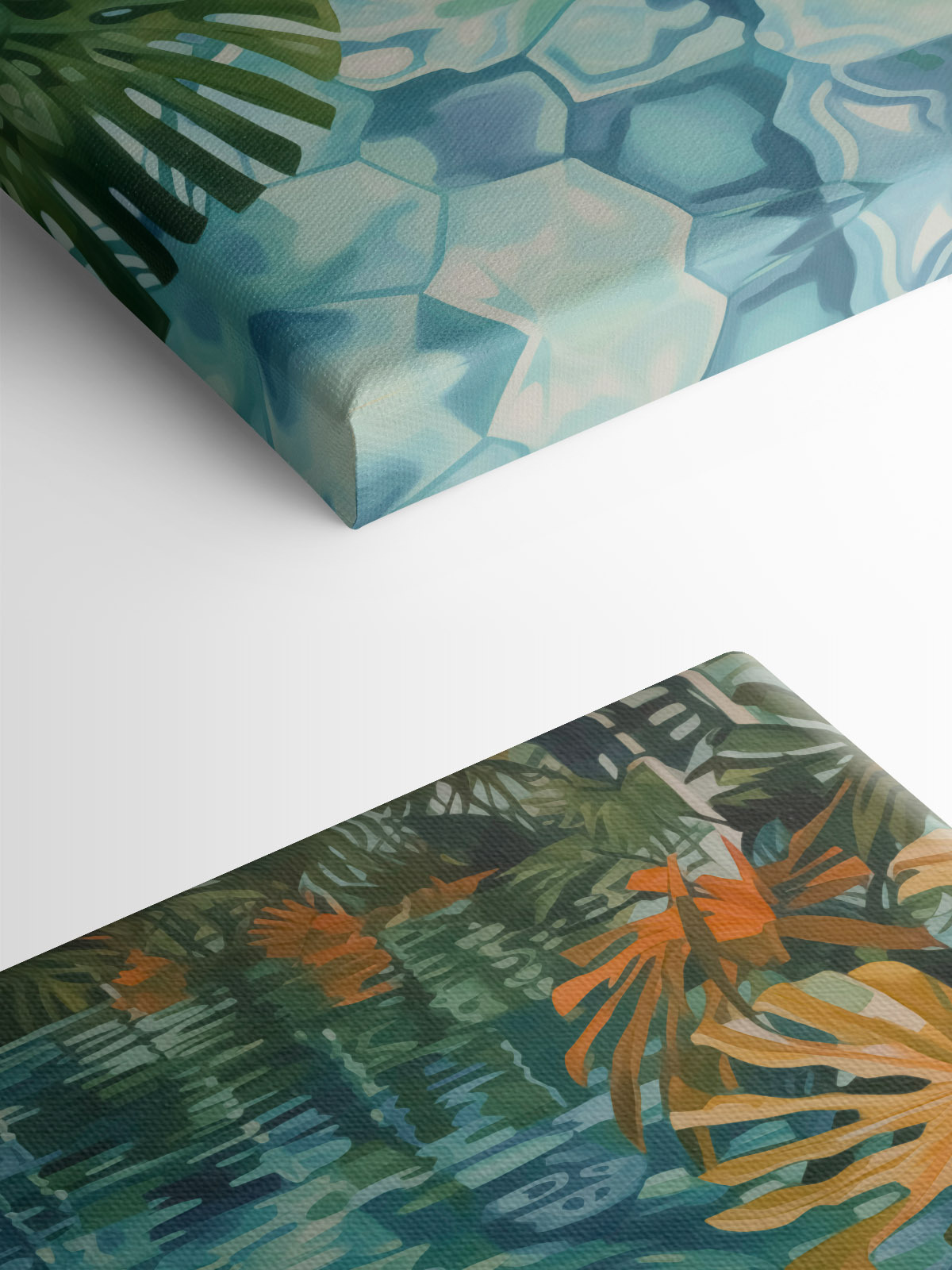 Imaginați-vă liniștea unei piscine senine, unde natura dansează cu apele calme, iar această imprimare pe pânză aduce acea scenă chiar în casa dvs. Cu o figură pașnică pierdută în gânduri, înconjurată de verdeață luxuriantă, este ca o mini-vacanță pentru pereții dvs. Perfectă pentru un colț de lectură confortabil sau pentru acel loc care are nevoie de puțină viață, această lucrare de artă vă invită să faceți o pauză, să respirați și poate chiar să visați puțin cu ochii deschiși. Culorile? Răcoritoare ca un strop de apă rece. Este mai mult decât un simplu decor; este o experiență – un memento blând pentru a îmbrățișa acele mici momente de pace din viața de zi cu zi.