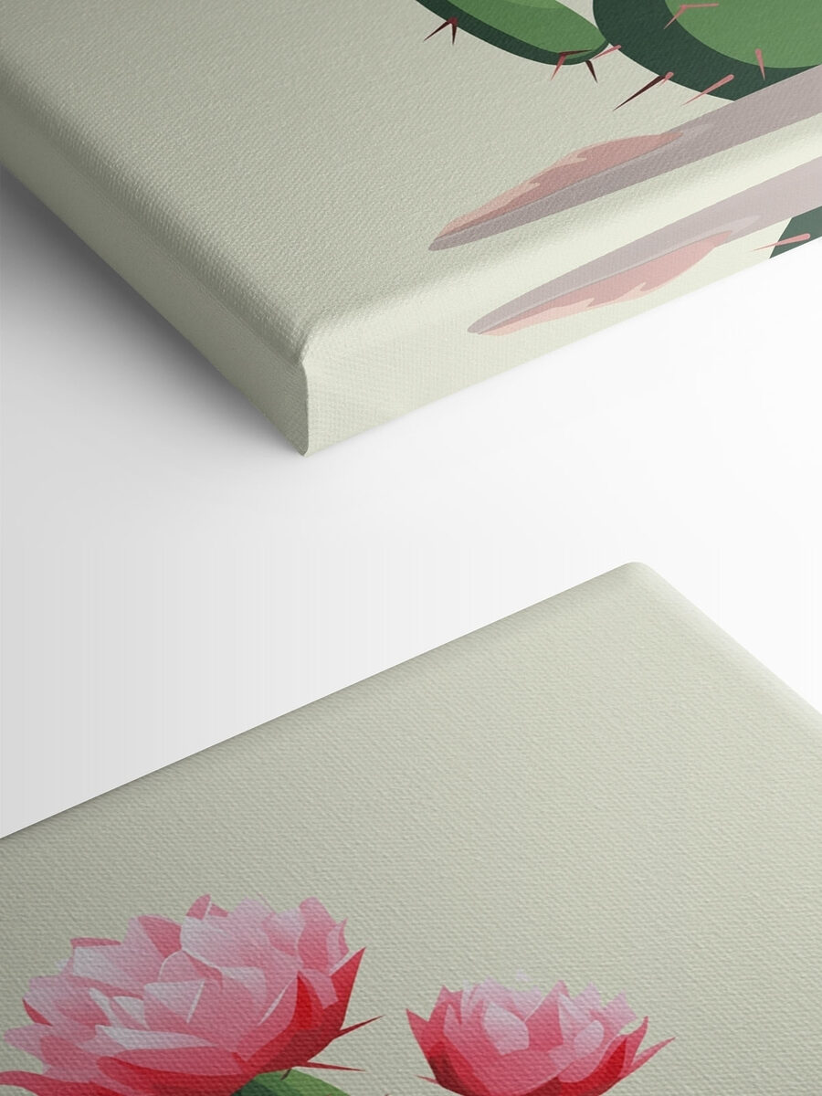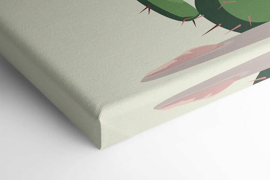 Înveseliți orice spațiu cu această imprimare încântătoare pe pânză care prezintă un cactus împodobit cu flori roz fermecătoare. Este ca o petrecere distractivă în deșert pentru pereții tăi! Imaginați-vă că intrați într-o cameră și simțiți instantaneu căldura unei zile însorite. Aceste culori îndrăznețe și designul jucăuș sunt perfecte pentru o cameră de zi sau un colț confortabil. În plus, aduce un pic de natură în interior, fără grija udării. Prietenii vă vor întreba cu siguranță unde ați găsit această piesă unică. Perfectă pentru a înfrumuseța un perete plictisitor și a adăuga un strop de personalitate, nu credeți? Un starter de conversație vesel, cu siguranță!