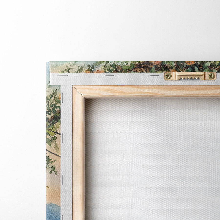 Imaginați-vă că vă relaxați în aceste scaune confortabile, înconjurat de lumini strălucitoare și flori. Acest minunat print pe pânză surprinde acel moment de vis când apusul de soare sărută lacul – un amestec perfect de calm și căldură. Nuanțele suave vă invită să vă relaxați, poate cu o ceașcă de ceai sau o carte bună în mână. Este ca și cum ai aduce o escapadă liniștită chiar în sufrageria ta. Imaginați-vă-o deasupra unui șemineu sau pe un perete confortabil, stârnind conversații și visări cu ochii deschiși. Această piesă nu numai că luminează spațiul, dar vă înfășoară într-o mică felie de liniște, făcând din fiecare privire o amintire blândă a magiei naturii.