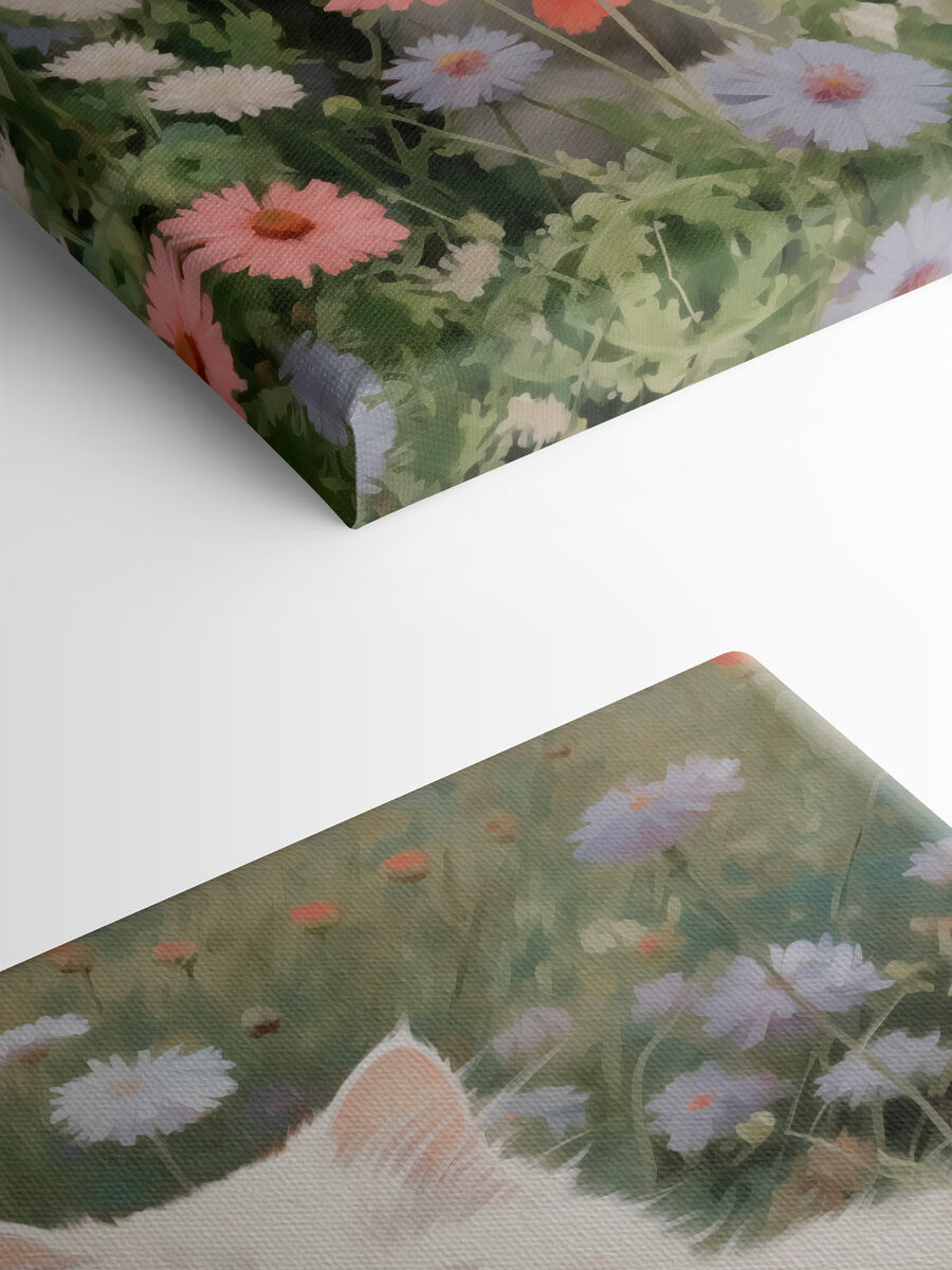 Imaginați-vă acest lucru: o pisică albă senină care se relaxează liniștită într-un câmp vibrant de flori. Acest print pe pânză surprinde perfect acest moment. Este ca o gură de aer proaspăt pentru orice cameră, adăugând un strop de natură și un strop de farmec. Gândiți-vă doar la cât de frumos ar arăta pe perete, luminând colțurile plictisitoare sau servind drept fundal confortabil pentru serile liniștite. Cu siguranță va stârni bucurie, poate chiar și câteva zâmbete din partea oaspeților. În plus, cine poate rezista drăgălășeniei unei pisici într-un câmp de flori? Este ca o bucățică de magie adusă în interior. Perfect atât pentru iubitorii de pisici, cât și pentru pasionații de flori!