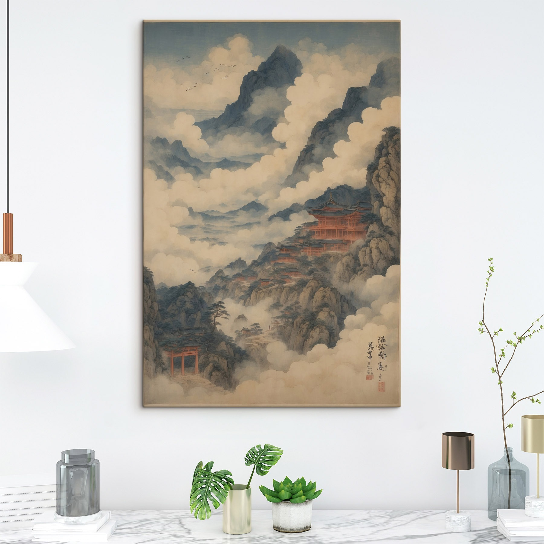 Imaginați-vă că intrați într-un spațiu care șoptește calm și liniște. Acest print pe pânză, care prezintă un templu uimitor așezat în vârful unui munte, face exact asta. Cu fundalul său cețos și nuanțele blânde, vă transportă instantaneu într-o lume senină, unde aproape că puteți auzi șoaptele frunzelor foșnind și păsările îndepărtate. Este ca o mini evadare din haosul vieții chiar pe peretele tău! Perfectă pentru un colț de lectură confortabil sau chiar pentru o cameră de zi plină de viață, această piesă invită la vibrații calme și un strop de aventură. Cine știe, ar putea chiar să inspire vise cu ochii deschiși la drumeții pe munte și retrageri în temple ascunse.