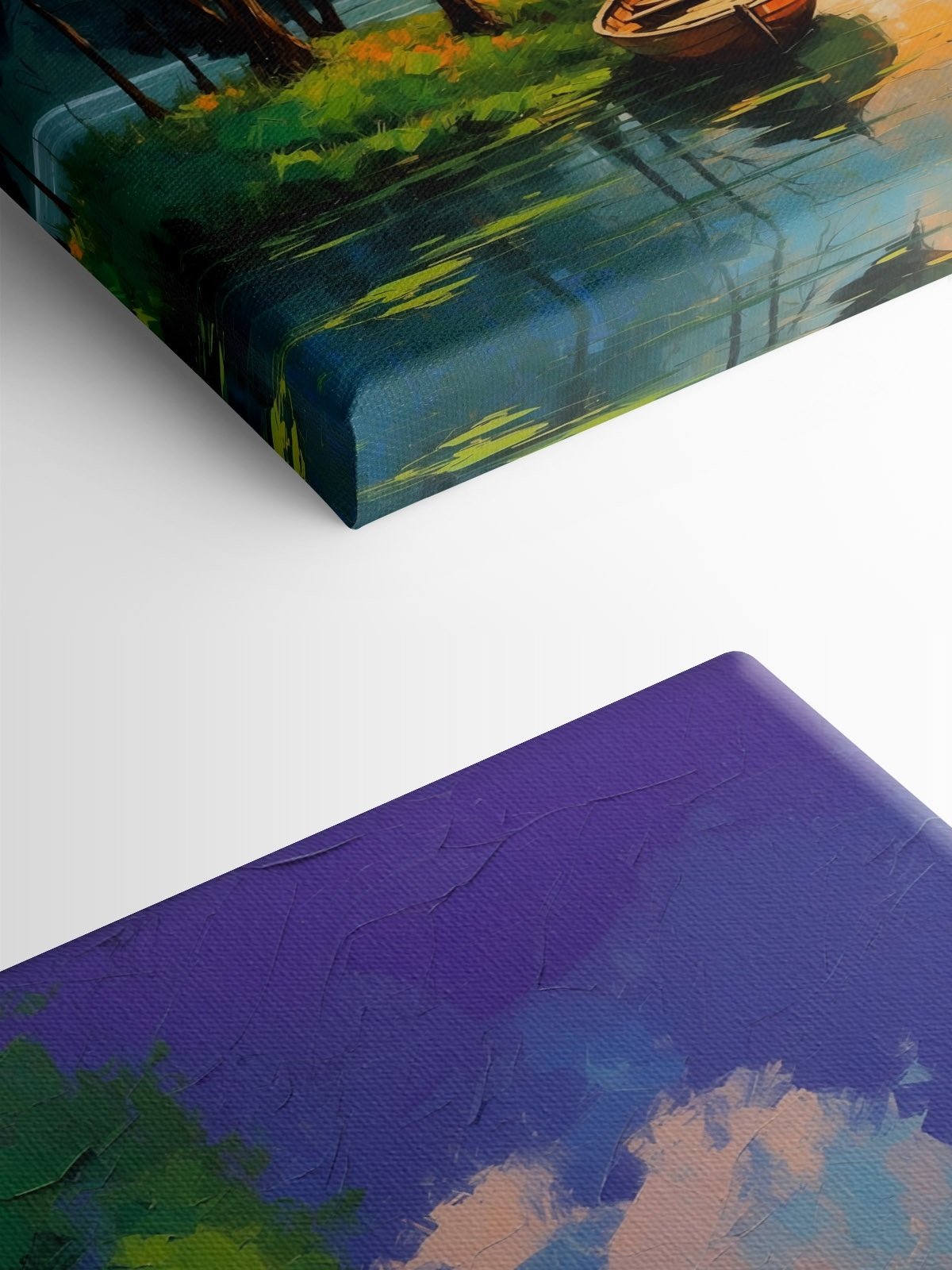 Imaginați-vă că pășiți într-o escapadă liniștită de fiecare dată când priviți această imprimare uimitoare pe pânză. Prezentând o barcă fermecătoare care se odihnește liniștită pe un lac strălucitor, această lucrare de artă aduce o felie de natură în interior. Copacii șoptesc povești despre briza blândă, în timp ce apusul de soare pictează cerul în nuanțe blânde, perfecte pentru a stârni visarea cu ochii deschiși a aventurilor de weekend.