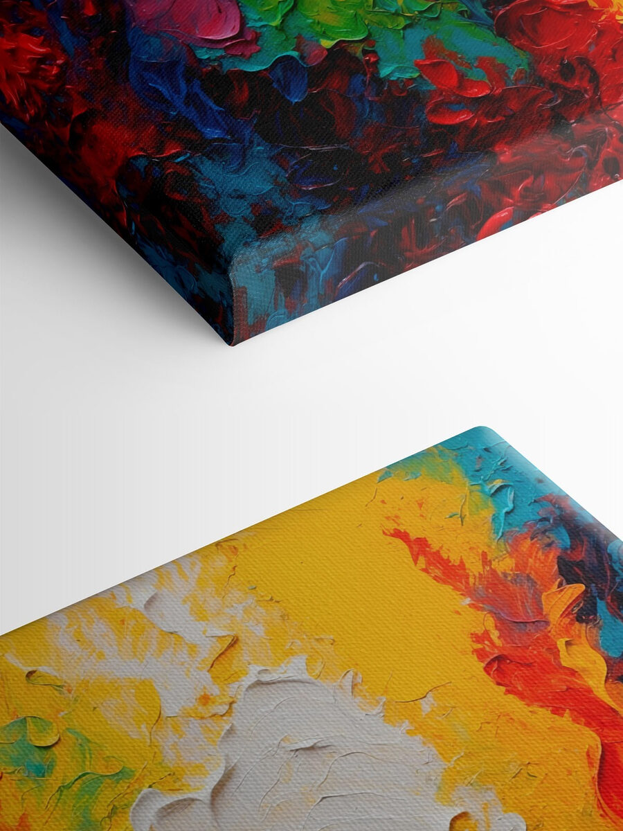 Înveseliți orice cameră cu această imprimare pe pânză vibrantă. Explodând cu vârtejuri de culoare, este ca o petrecere de dans veselă pentru pereții dvs.! Imaginați-vă că intrați în spațiul dvs. și sunteți întâmpinați de stropi de roșu energic, galben vesel și albastru liniștitor. Această piesă nu doar atârnă acolo – invită la conversație, stârnește creativitatea și face ca fiecare zi să pară puțin mai specială. Perfectă pentru camere de zi, colțuri de artă sau oriunde este nevoie de puțină vitalitate. Este ca un strop de soare într-o zi înnorată – garantat va aduce zâmbete și poate chiar un chicotit sau două.