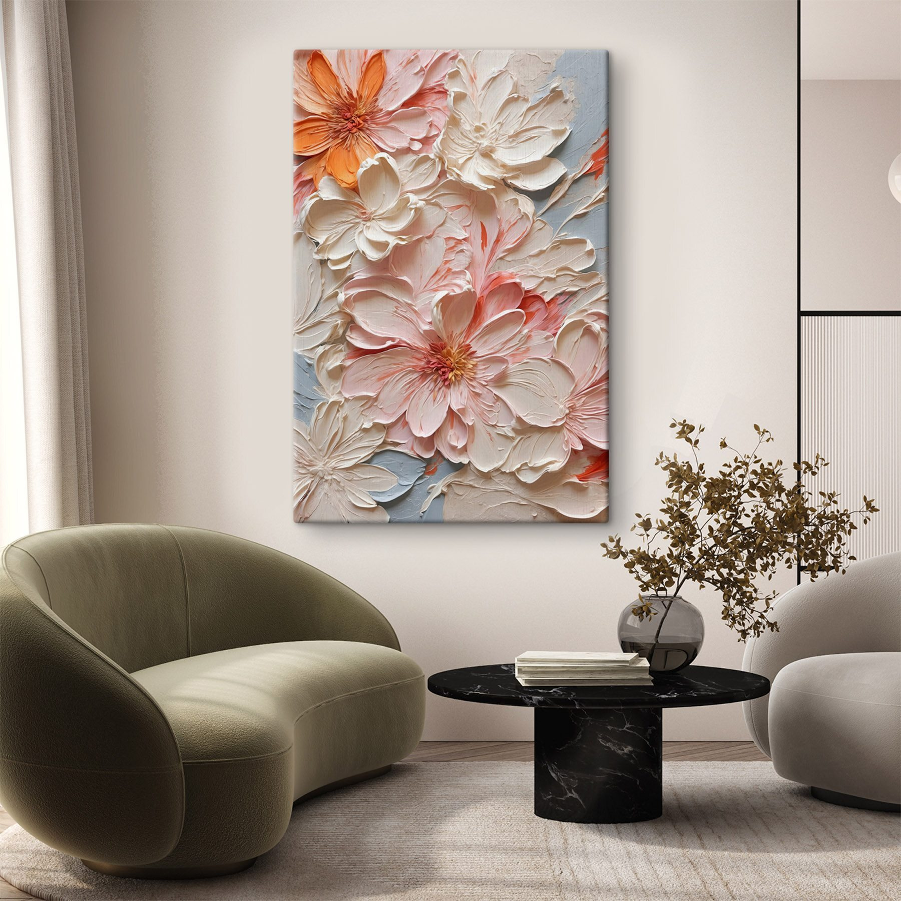 Înveseliți orice spațiu cu această încântătoare imprimare pe pânză, “Frumusețe florală în nuanțe vibrante”. Imaginați-vă că intrați într-o cameră și simțiți instantaneu acea explozie de bucurie – ca o petrecere în grădină în plină floare! Florile uimitoare dansează pe un fundal blând, creând o simfonie de culori care va atrage privirile oricui. Se simte ca primăvara, indiferent de anotimpul de afară. Perfectă pentru acel perete gol, opera de artă adaugă o notă vibrantă și un strop de căldură. Oaspeții tăi ar putea să o confunde cu o fereastră spre o pajiște cu flori. Jasper, pisica, adoră să doarmă sub ea – trebuie să fii cu ochii pe ea, mai ales cu aceste culori! Această pânză este mai mult decât un simplu decor; este o invitație de a experimenta o mică fericire zilnică.