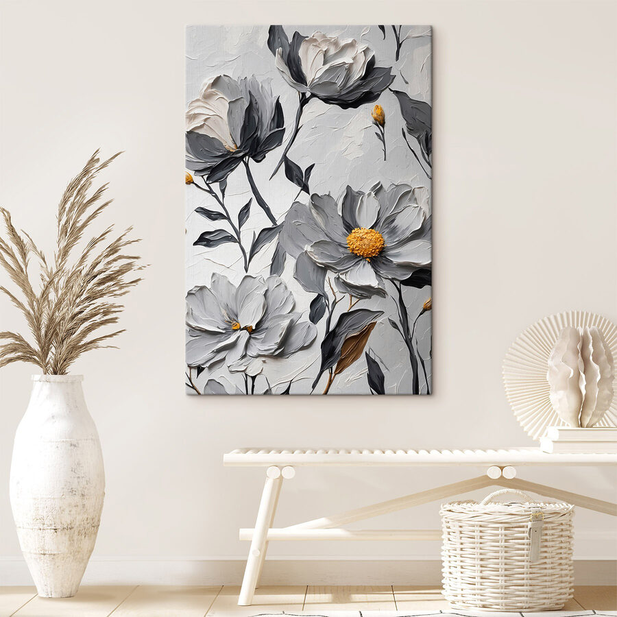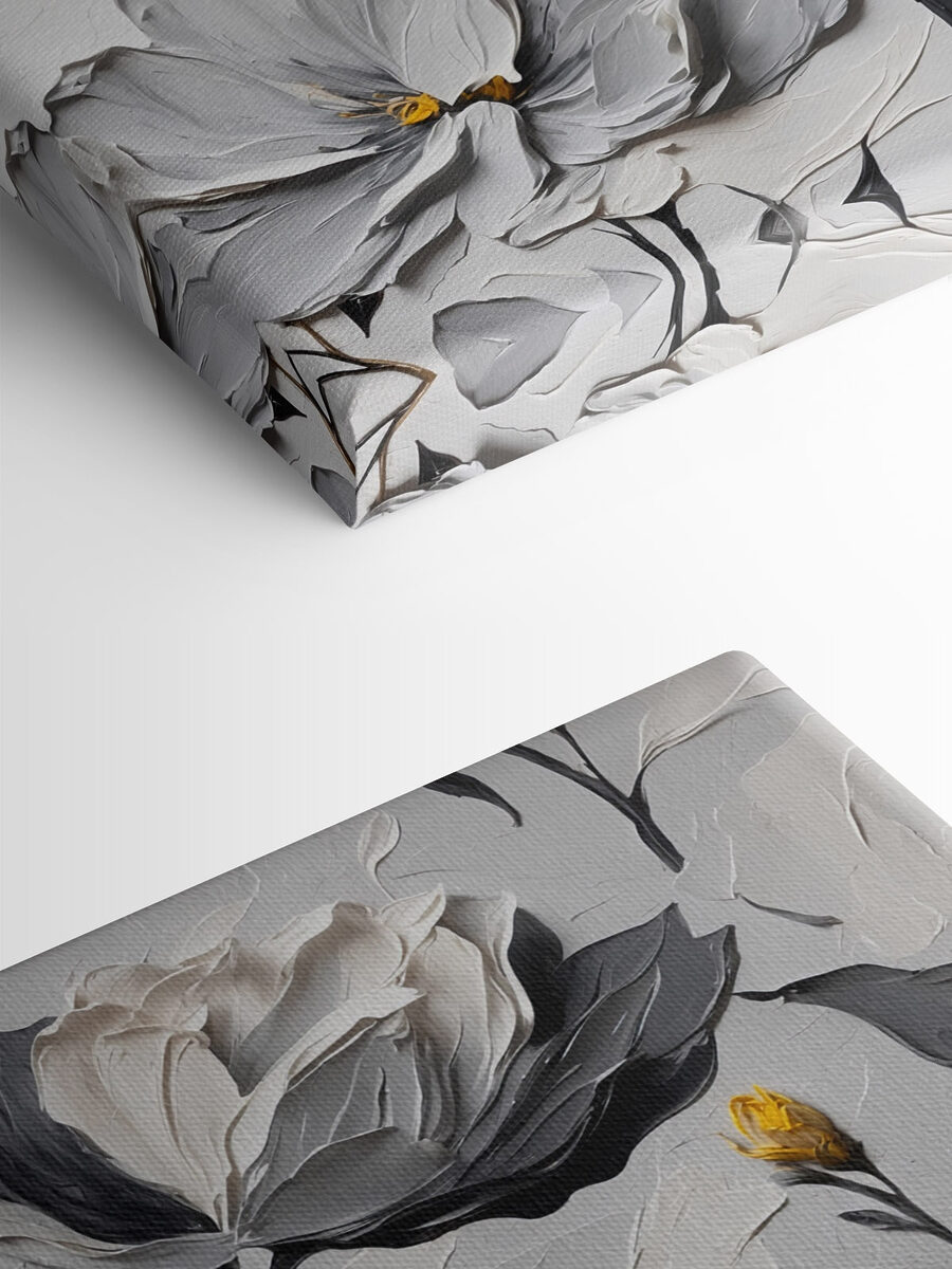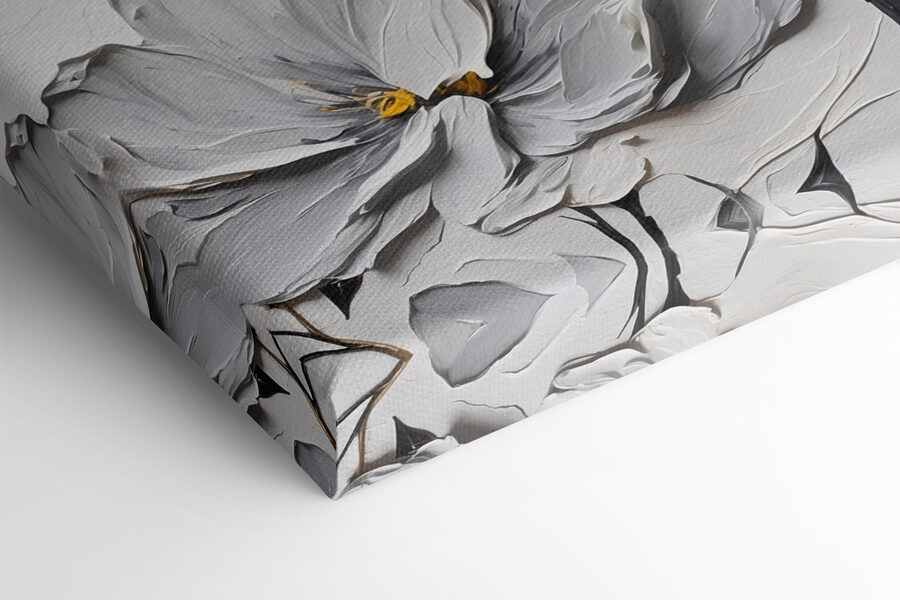 Înveseliți orice colț cu acest minunat print pe pânză cu flori grațioase pe un fundal alb și moale. Este ca și cum ai aduce o grădină în casă, mai puțin alergiile! Nuanțele blânde se îmbină perfect, creând o atmosferă calmă care te face să te simți bine. Imaginați-vă sorbind cafea, pierzând noțiunea timpului în timp ce priviți aceste petale luxuriante. Perfectă pentru o cameră de zi sau un colț de lectură confortabil, această piesă șoptește eleganță și căldură. În plus, este un starter de conversație – prietenii se vor întreba dacă tocmai ați fost într-o vacanță florală! O mică felie de natură, chiar pe peretele tău.
