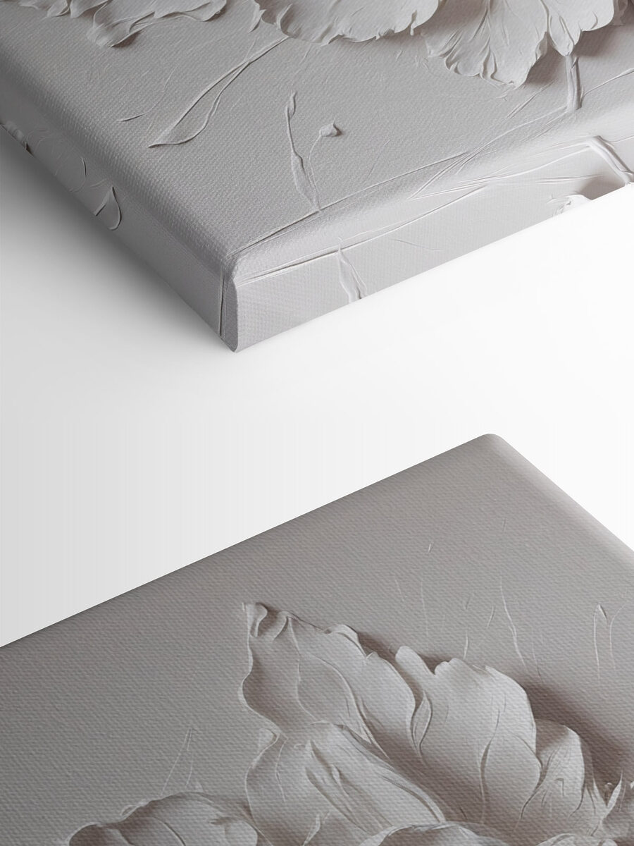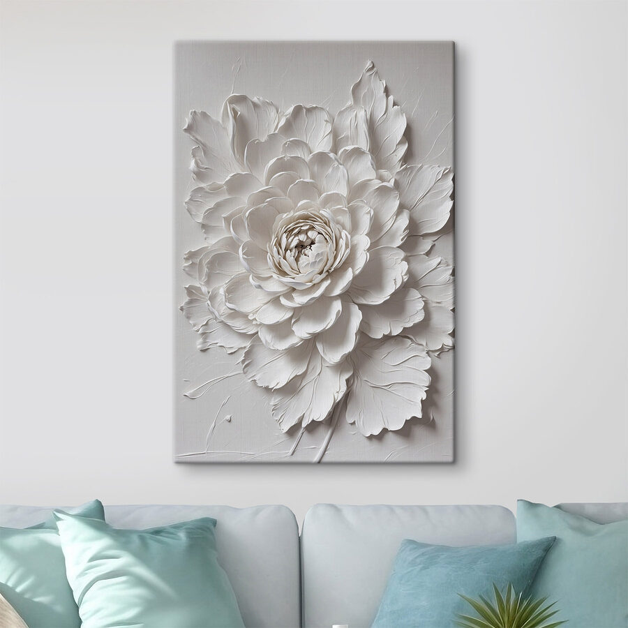 Transformați orice perete cu imprimarea uimitoare pe pânză a unei flori albe și frunze. Această piesă nu este doar un decor; este ca o gură de aer proaspăt pentru spațiul tău, șoptindu-ți eleganță și calm. Imaginați-vă-o într-un colț de lectură confortabil sau chiar deasupra unei mese de luat masa, creând o atmosferă moale și primitoare. Straturile complicate creează un sentiment de profunzime, atrăgând privirea, iar frunzele delicate adaugă o notă blândă de natură. Este genul de artă care te face să vrei să te oprești, să sorbi o ceașcă de ceai și să te bucuri pur și simplu de moment. Cine ar fi crezut că o floare poate spune atât de multe?