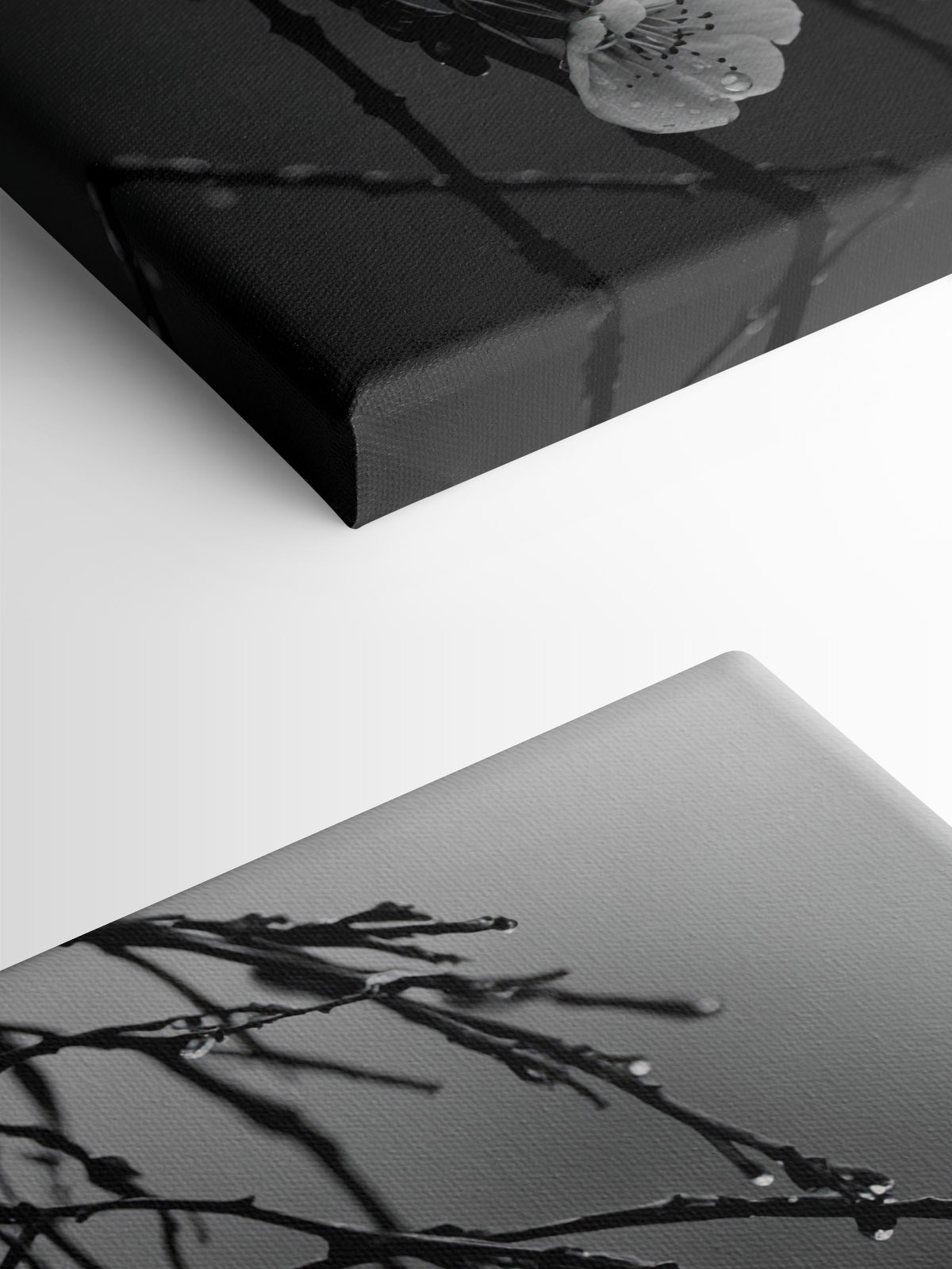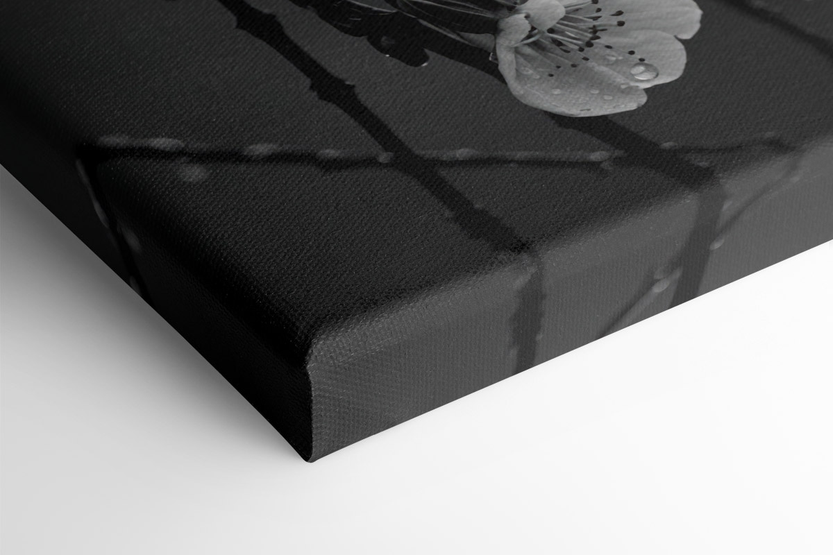 Imaginați-vă că intrați într-o cameră confortabilă în care aerul este plin de parfumul suav al florilor proaspete. Această imprimare pe pânză, cu petale delicate acoperite de picături blânde, surprinde exact acest sentiment. Nu este doar o piesă de artă; este ca o șoaptă a naturii în spațiul tău. Designul alb-negru adaugă o notă atemporală, completând orice decor. Imaginați-vă că vă încolăciți cu o carte în apropiere, acea priveliște liniștitoare mereu pe perete, amintindu-vă de diminețile proaspete. Această piesă invită la un vibe senin, ceea ce o face un starter de conversație perfect. Luați o ceașcă de ceai și lăsați-vă grijile să plutească departe.