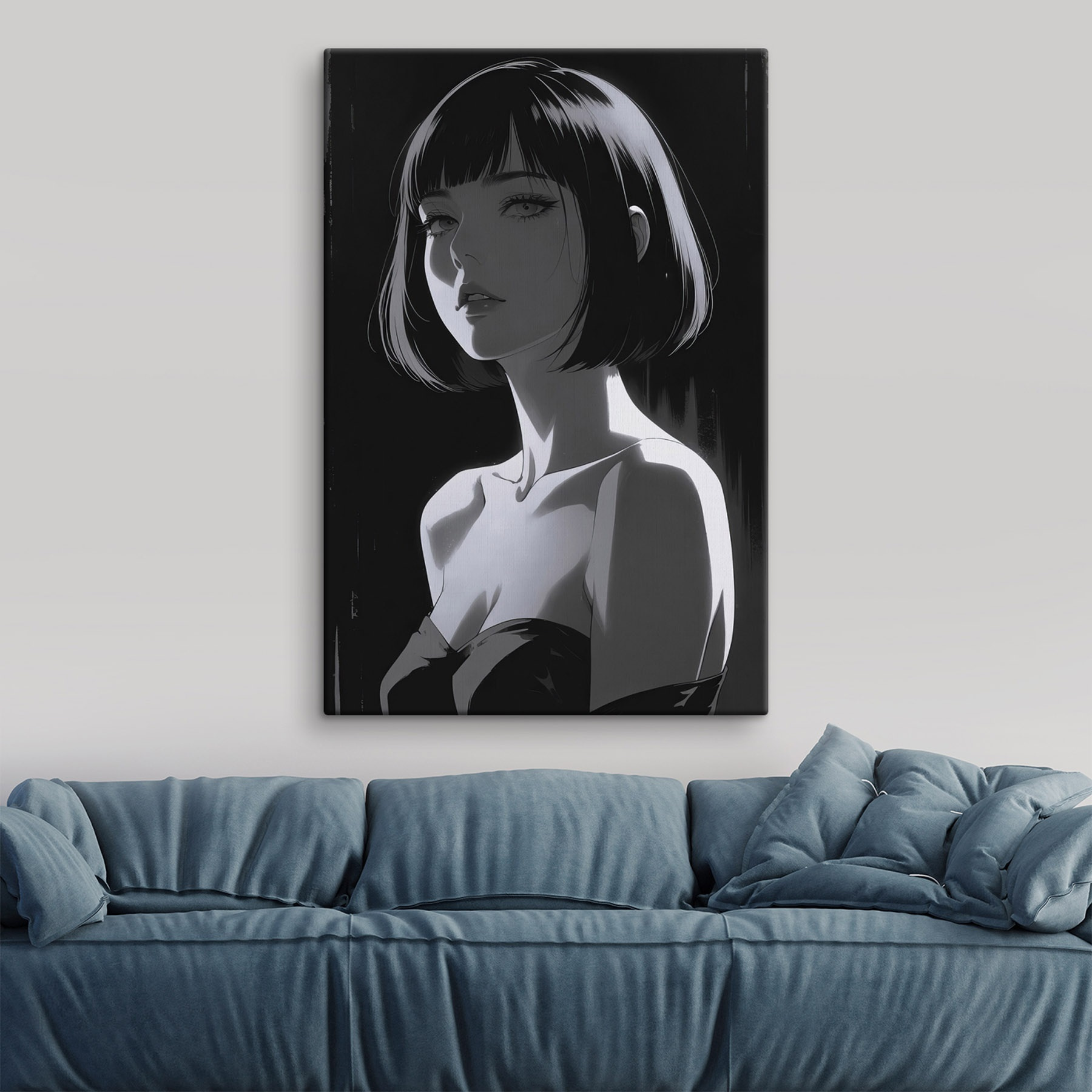 Pășiți în lumea eleganței izbitoare cu această imprimare captivantă pe pânză – un portret șic al unei femei cu părul scurt care întoarce capetele. Paleta monocromă oferă o vibrație atemporală, perfectă pentru orice cameră care ar avea nevoie de o notă de sofisticare. Imaginați-vă-o agățată într-un colț de lectură confortabil sau într-un living trendy, stârnind conversații și complimente deopotrivă. Fiecare privire oferă o poveste nouă, ca și cum ar deține secrete care așteaptă să fie descoperite. Nu este doar artă; este o stare de spirit, un sentiment și, sincer, cine nu și-ar dori o astfel de intrigă în casa sa? Perfect pentru oricine apreciază stilul și profunzimea în decorul său.