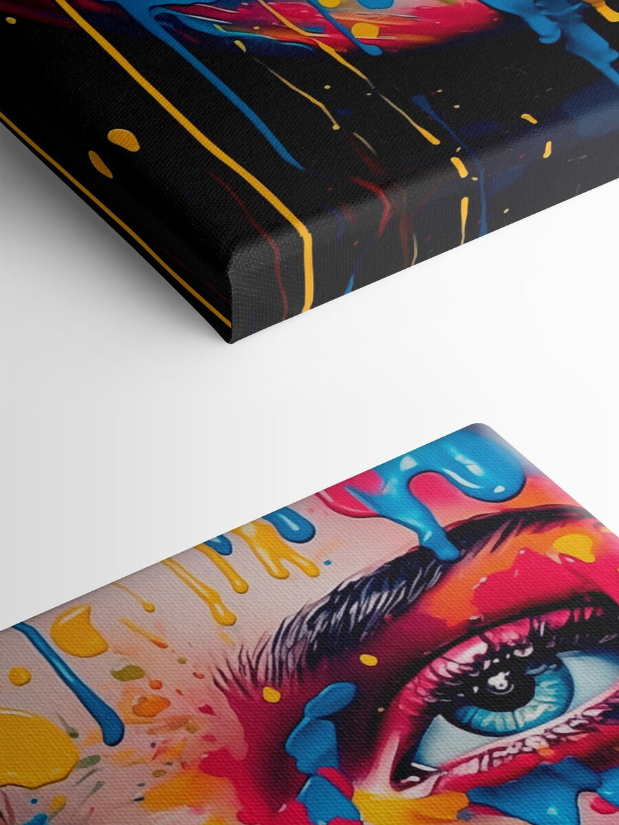 Aduceți un strop de vibrație în orice spațiu cu acest print pe pânză impresionant. Reprezentând o femeie îndrăzneață, expresivă, împodobită cu o cascadă de vopsea colorată, este ca și cum te-ar invita în lumea ei de creativitate. Imaginați-vă că energia ei luminează o cameră de zi sau un studio – vorbiți despre un starter de conversație! Fiecare picătură de vopsea pare să spună o poveste, stârnind inspirație și adăugând o notă jucăușă decorului tău. Perfect pentru cei care iubesc arta care sparge tiparele. Agățați-o și priviți cum transformă atmosfera – plină de energie, intrigantă și un pic nervoasă!