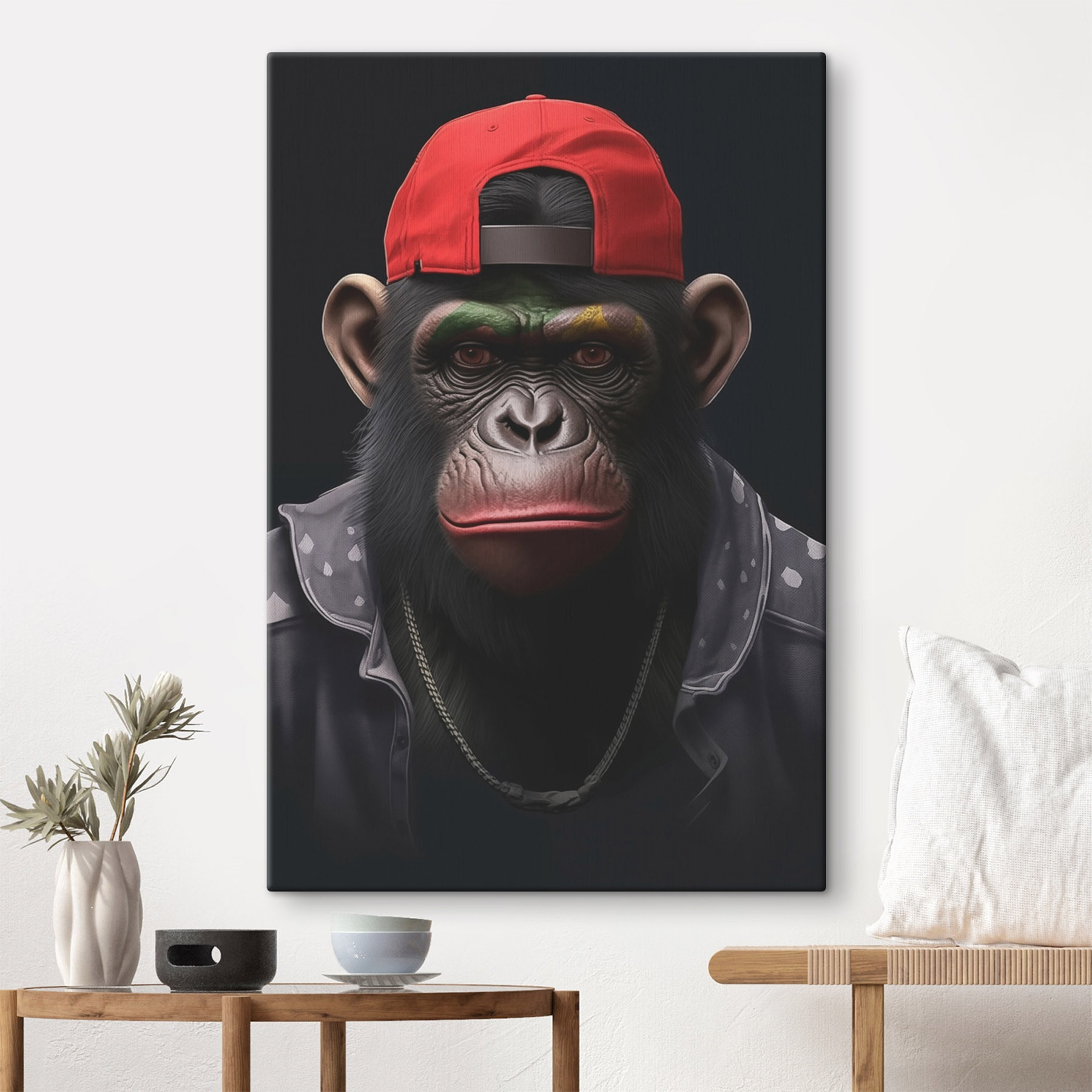 Înveselește orice cameră cu această imprimare ciudată pe pânză, care înfățișează un cimpanzeu cool, cu o pălărie roșie și o jachetă ca și cum ar fi ultimul trend. Imaginați-vă acest lucru: un starter de conversație amuzant care atrage atenția tuturor, stârnind zâmbete în timp ce invitații încearcă să ghicească povestea maimuței. Are misiunea de a găsi cea mai bună banană din oraș sau doar vibrează în ținuta sa elegantă? Indiferent de poveste, această piesă adaugă un strop de distracție și personalitate spațiului tău. Este perfectă pentru camere de zi, dormitoare sau chiar acel colț de birou care are nevoie de puțină veselie. Cui nu i-ar plăcea un cimpanzeu îmbrăcat în stil stradal?