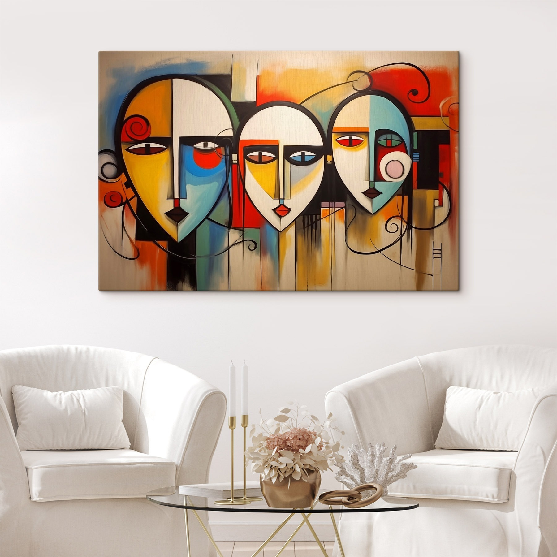 Înveseliți orice spațiu cu această pictură murală vibrantă de chipuri, plină de personalitate. Fiecare figură spune o poveste și atrage privirea, făcând imposibil să nu te întrebi despre gândurile și viețile lor. Este ca și cum o conversație plină de viață ar avea loc chiar pe peretele dvs., primind oaspeții cu brațele deschise. Imaginați-vă sorbind cafea, privind această operă de artă – culorile dansează, expresiile sunt vii. Perfectă pentru o cameră de zi sau un colț creativ, aceasta adaugă acel farmec unic care stârnește bucurie și aprinde imaginația. Cine ar fi crezut că un perete poate fi atât de viu?
