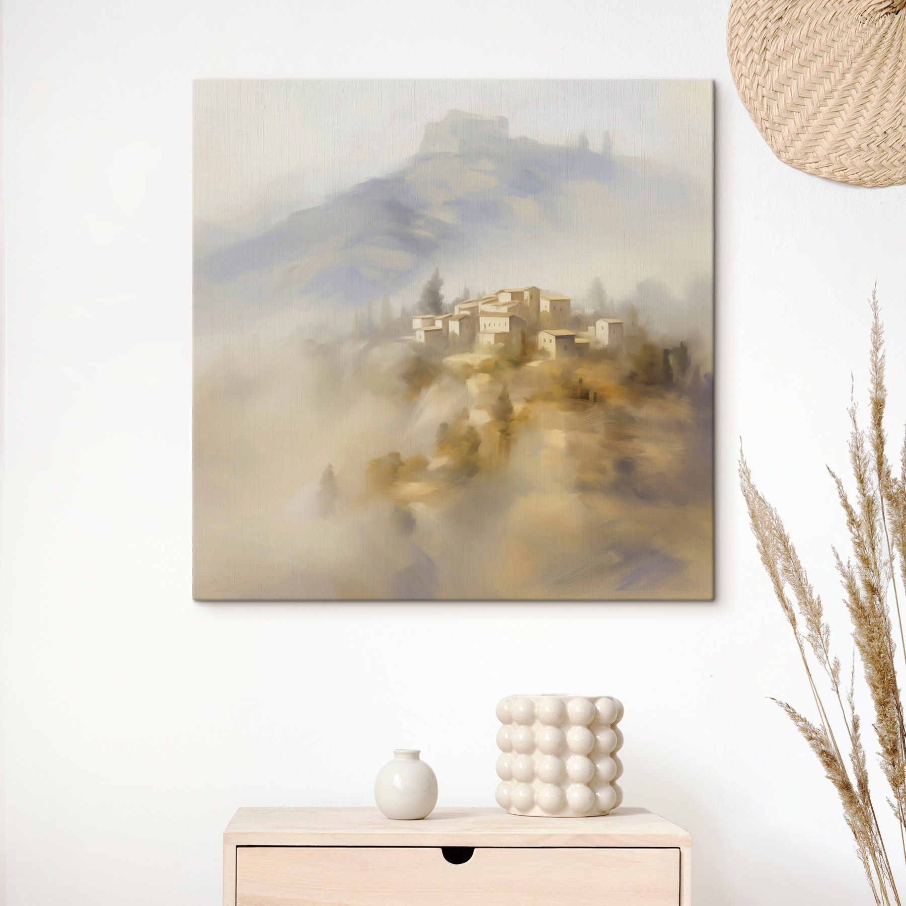 Imaginați-vă că pășiți într-o lume în care un sat pitoresc șoptește secrete ale trecutului, cuibărit pe un deal cețos. Acest print pe pânză surprinde această atmosferă de vis, invitând privitorii să se piardă în tușele sale moi și în culorile calde. Imaginați-vă-o agățată într-un living confortabil, unde stârnește conversații despre călătorii în locuri îndepărtate sau visează cu ochii deschiși la escapade liniștite. Ceața blândă adaugă o notă misterioasă – ca și cum satul ar ascunde povești care așteaptă să fie descoperite. Este mai mult decât o simplă artă de perete; este o evadare, o felie de confort care aduce o atingere a naturii în interior. Perfect pentru oricine caută să adauge un pic de farmec spațiului său.