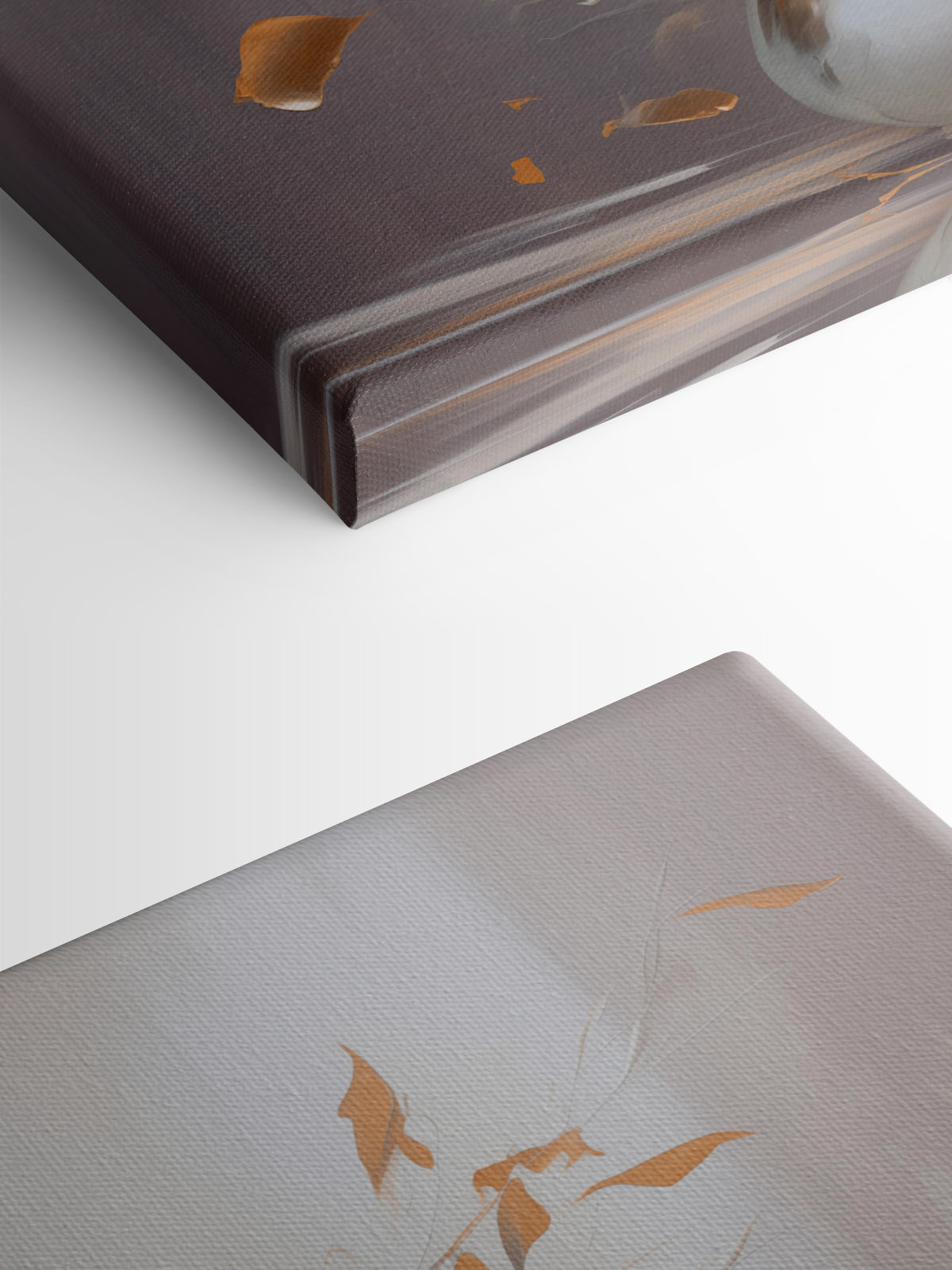 Transformați-vă spațiul cu “Delicate Blooms in a Serene Vase”. Această imprimare captivantă pe pânză aduce o vibrație proaspătă și aerisită în orice cameră. Imaginați-vă că intrați în sufragerie, întâmpinați instantaneu de acele flori albe grațioase, care se leagănă ușor, ca și cum ar fi sărutate de o briză ușoară. Este genul de lucrare de artă care stârnește conversații și invită la visare cu ochii deschiși, cum ar fi planificarea unei petreceri în grădină sau pur și simplu savurarea unui moment de liniște cu o ceașcă de ceai. Culorile atenuate se îmbină frumos, creând o atmosferă calmă. Perfectă pentru iubitorii de flori și pentru oricine are nevoie de o atingere a naturii, această piesă adaugă farmec și căldură decorului dvs. Cine nu și-ar dori asta?