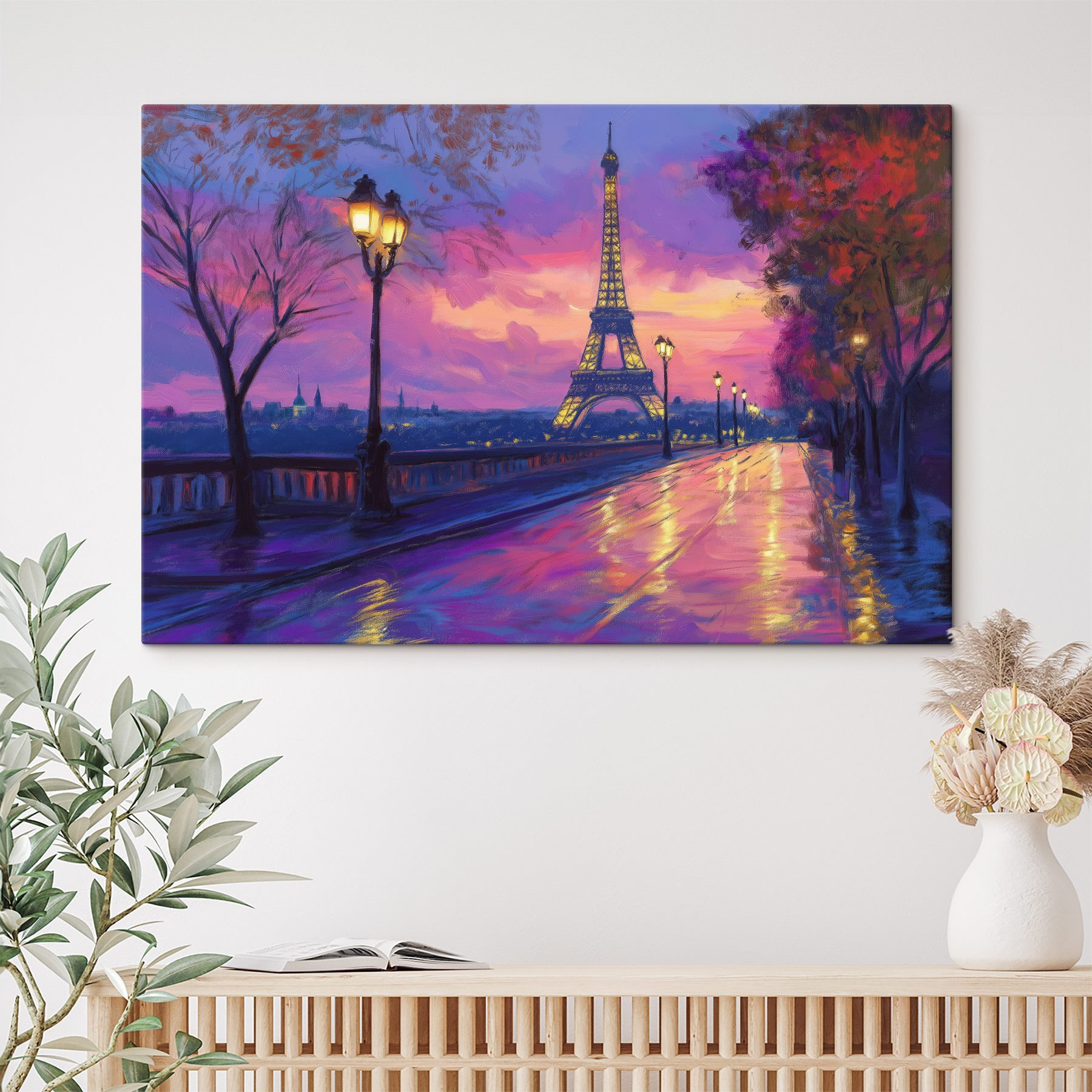 Transformați orice perete într-o evadare de vis cu această imprimare uimitoare pe pânză a unei străzi care duce la un turn iluminat. Imaginați-vă că vă plimbați prin acea atmosferă senină, lampioanele sclipitoare aruncând o lumină caldă în timp ce cerul de seară se topește în nuanțe de roz și violet. Nu este doar artă; este o invitație de a face o pauză și de a absorbi magia vieții de oraș, chiar dacă este din confortul de acasă. Perfect pentru a stârni conversații sau pur și simplu pentru a visa cu ochii deschiși la plimbarea pe străzi noi. Fiecare privire aduce un nou val de inspirație, făcând ca orice cameră să se simtă puțin mai vie. Cine ar fi crezut că un perete poate avea un asemenea farmec?