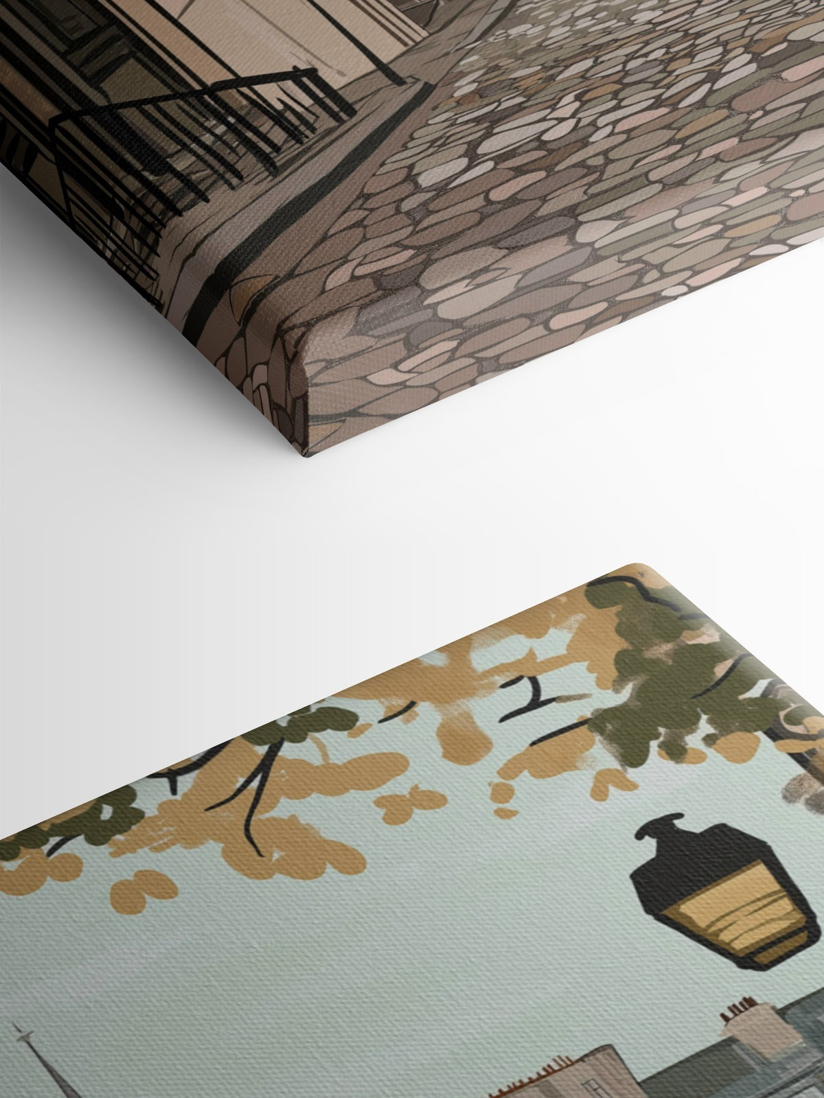 Pășiți într-o lume în care pavelele șoptesc povești din trecut. Această scenă stradală fermecătoare, cu clădirile sale ciudate și stâlpul de iluminat primitor, adaugă o notă caldă oricărei camere. Imaginați-vă că vă relaxați cu o carte bună, aici, scăldat în strălucirea blândă a magiei iluminatului stradal, ca și cum ați fi fost transportat pe o alee europeană capricioasă. Nuanțele subtile se potrivesc perfect cu decorul tău, făcându-l să se simtă atât confortabil, cât și elegant. Perfectă pentru oricine iubește să viseze la locuri îndepărtate, această pictură murală este o amintire încântătoare că aventura vă așteaptă chiar în fața ușii.