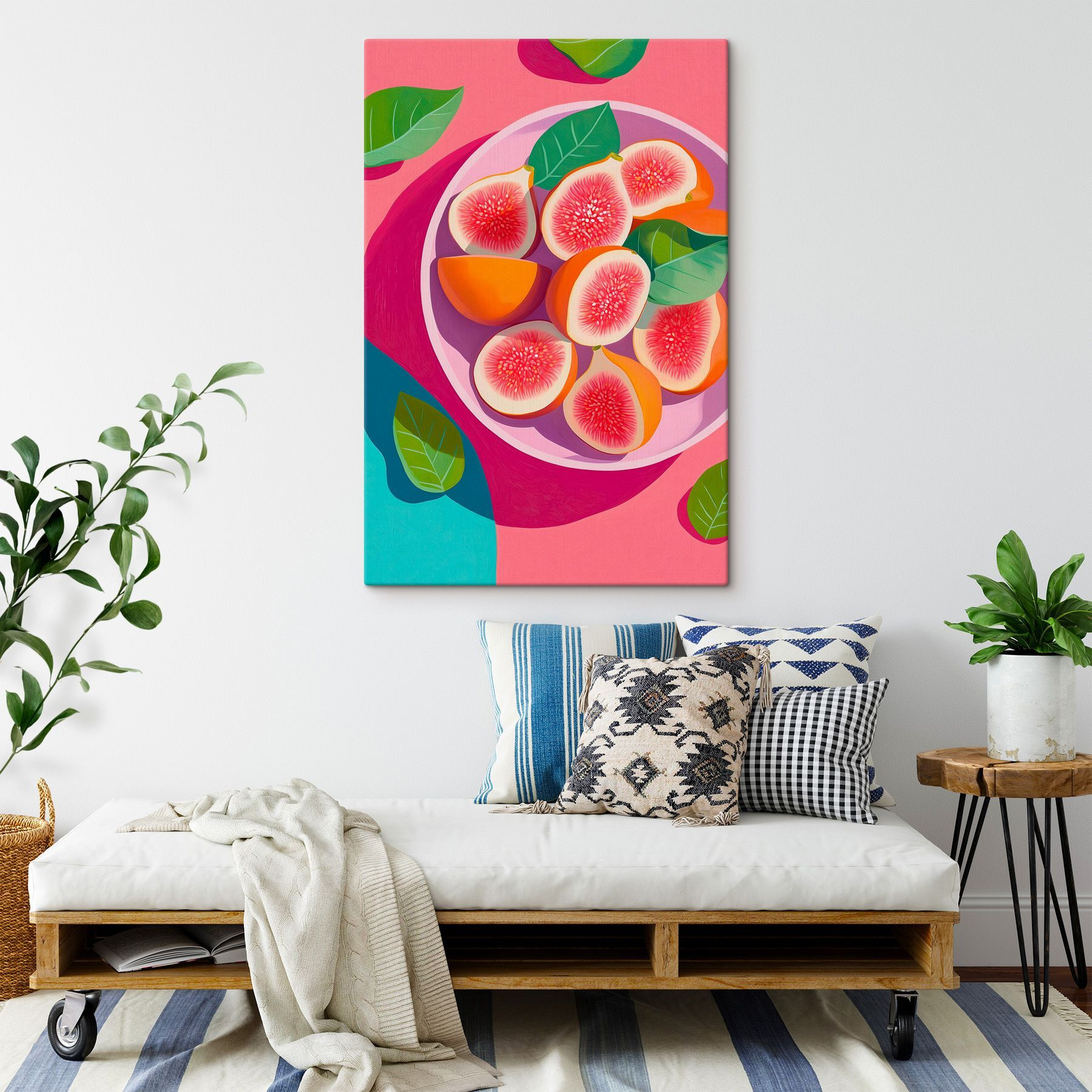 Înveseliți orice spațiu cu această imprimare încântătoare pe pânză a unui bol plin cu fructe proaspete și frunze vibrante. Este mai mult decât artă; este ca și cum ai aduce o parte dintr-un picnic de vară chiar în casa ta. Imaginați-vă că treceți pe acolo și vedeți acele smochine suculente – aproape că vă vine să întindeți mâna și să luați una. Punctele de culoare amuzante pot stârni bucurie în orice cameră, fie că este vorba de bucătărie, zonă de luat masa sau chiar un colțișor confortabil. Perfectă pentru iubitorii de fructe și pentru oricine iubește un strop de culoare, această piesă va stârni cu siguranță vibrații vesele și poate chiar va inspira o salată de fructe sau două.