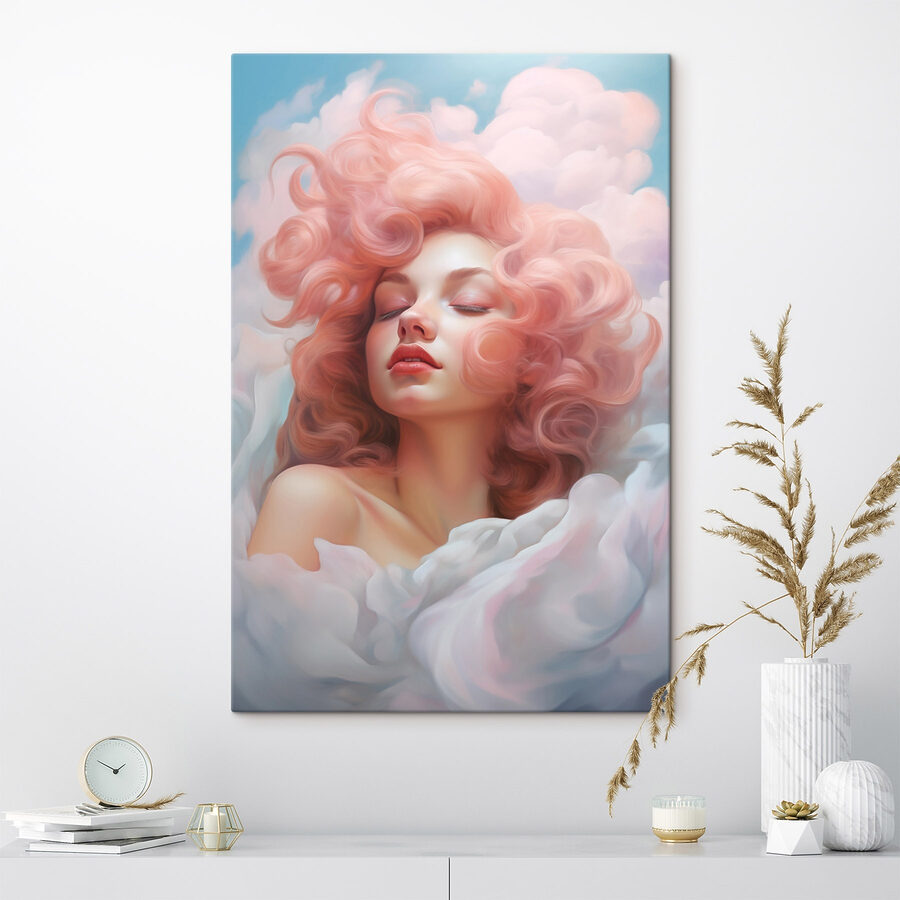 Transformați orice spațiu cu această imprimare uimitoare pe pânză cu o femeie învăluită în nori moi, de vis și păr roz vibrant. Acesta emană o vibrație aerisită, perfectă pentru sufragerie, dormitor sau chiar un colț de lectură confortabil. Imaginați-vă că vă relaxați, sorbiți cafea și vă pierdeți în expresia ei senină. Ea este ca un memento blând pentru a îmbrățișa creativitatea și culorile în viață. În plus, stârnește conversații – credeți-mă, toată lumea va dori să știe de unde provine această frumusețe. Adăugați această piesă decorului dvs. și priviți cum întreaga atmosferă se înveselește.