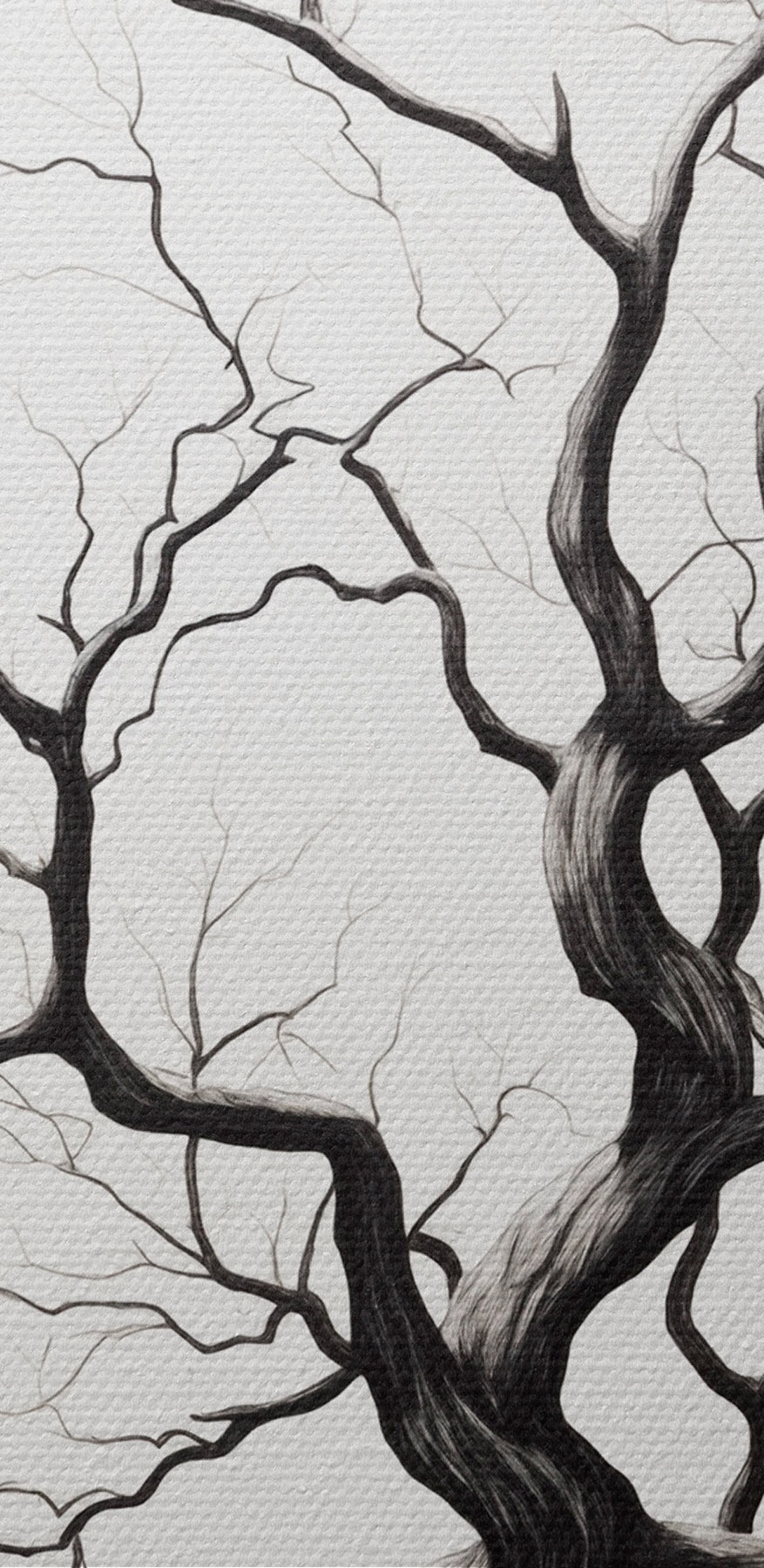 Imaginați-vă că intrați într-o cameră în care aerul se simte puțin mai proaspăt, aproape ca dimineața devreme sub un copac gol. Acest desen alb-negru surprinzător surprinde perfect această esență. Crengile goale se răsucesc și se întorc, spunând povești despre rezistența și anotimpurile trecute. Adaugă o anumită vibrație calmă oricărui perete, stârnind gânduri de natură și pace. Imaginați-vă un colț confortabil cu această piesă, poate o ceașcă aburindă de ceai în mână, simțindu-vă introspectiv. Este ca și cum ai avea o bucată din marea natură în interior, aducând acea atingere minimalistă care spune multe fără să scoată un cuvânt. Perfectă pentru cei care apreciază arta care rezonează.